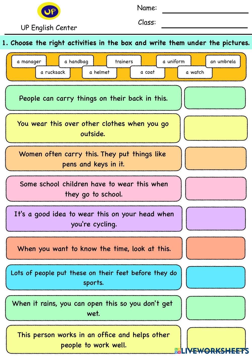 Created by upenglishcenterct ESL English A2-Elementary Grammar English Author's Instructions WS My Google Classroom Courses × 0 classes selected (0 students total) Quick Access Select all classes (0 classes) All Classes Loading courses... Cancel Share Share to selected Course __COURSE_NAME__ __STUDENT_NAME__ (__STUDENT_EMAIL__) PU3 - Review all units Download Worksheet Validation Check my answers Emails my answers to my teacher Full name Group/level School subject Teacher's email or key code Close Submit Validating worksheet... (12) Your answers have been sent to your teacher. Good luck! OK We encountered an error submitting your answers. Please try again. OK Advertisement | Go Ad Free Created by upenglishcenterct ESL English A2-Elementary Grammar English Author's Instructions WS Explore Worksheets Present Simple vs Present Continuous ESL A2-Elementary Present Simple vs Present Continuous Grammar - ESL English as a second language Present simple and present continuous: Choose the correct verb form Tenses Review - Present Perfect & Past Simple and Present Simple (Dev 2) ESL A2-Elementary Tenses Review - Present Perfect & Past Simple and Present Simple (Dev 2) Grammar - ESL Tenses Review - Present Perfect & Past Simple and Present Simple (Dev 2) Present Simple ESL A2-Elementary Present Simple Grammar - ESL English as a second language Present Simple exercices Present simple affirmative and negative ESL A2-Elementary Present simple affirmative and negative Grammar - ESL English as a second language This worksheet is not my product, I've just made it interactive. Main content: Present Simple