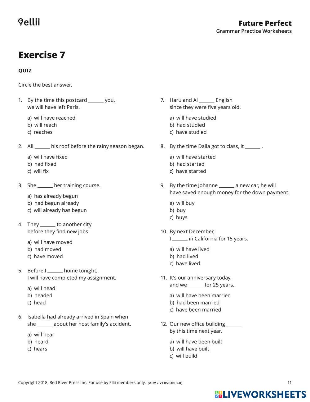 Select the best verb form to complete each sentence.