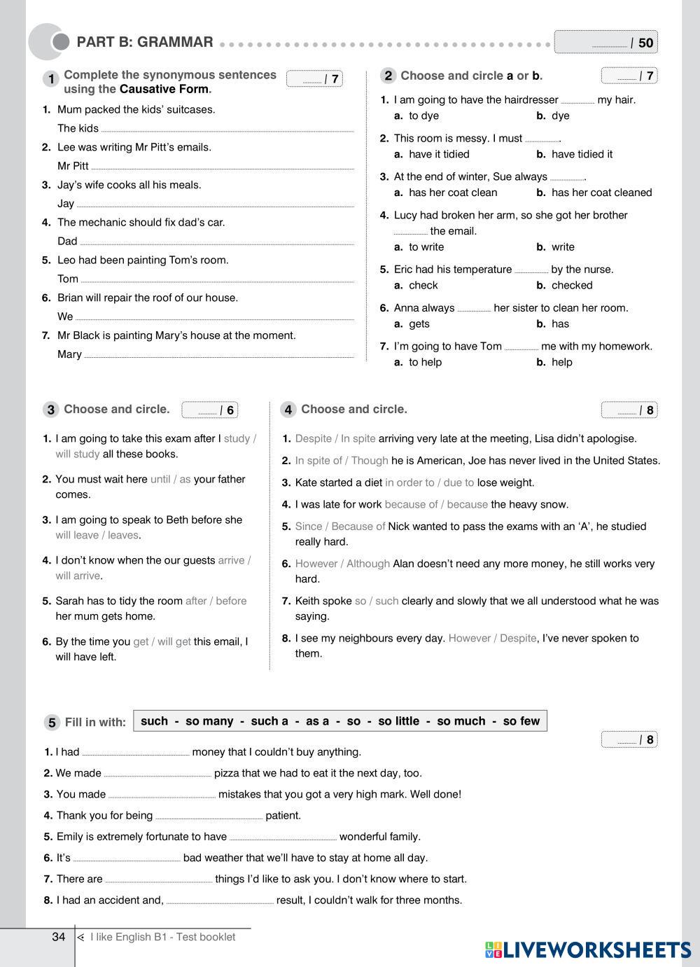 Created byAngeliki Kazakidou ESL English B1 Grammar English Author's Instructions Complete all the activities My Google Classroom Courses × 0 classes selected (0 students total) Quick Access Select all classes (0 classes) All Classes Loading courses... Cancel Share Share to selected Course __COURSE_NAME__ __STUDENT_NAME__ (__STUDENT_EMAIL__) ILikeEnglishB1 - Test 9 Download Worksheet Validation Check my answers Emails my answers to my teacher Full name Group/level School subject Teacher's email or key code Close Submit Validating worksheet... (12) Your answers have been sent to your teacher. Good luck! OK We encountered an error submitting your answers. Please try again. OK Advertisement | Go Ad Free Created byAngeliki Kazakidou ESL English B1 Grammar English Author's Instructions Complete all the activities Explore Worksheets Synchronize 2 Unit 4 A Helping Hand ESL B1 Synchronize 2 Unit 4 A Helping Hand Grammar - ESL Follow the instructions B1 Test 4 ESL B1 B1 Test 4 Grammar - ESL Read the instructions and answer the questions. Present Perfect Simple - positive and negative ESL B1 Present Perfect Simple - positive and negative Grammar - ESL English as a second language Worksheet on present perfect simple Main content: Present perfect Other contents: present perfect simple, form, positive, negative Progress Test ESL B1 Progress Test Grammar - ESL Grammar: Present Perfect Tense