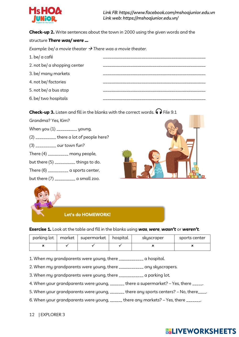 Created byMissili Ann ESL English A1 Grammar English Author's Instructions Complete the tasks given. My Google Classroom Courses × 0 classes selected (0 students total) Quick Access Select all classes (0 classes) All Classes Loading courses... Cancel Share Share to selected Course __COURSE_NAME__ __STUDENT_NAME__ (__STUDENT_EMAIL__) UNIT 9 - LESSON 2- THERE WAS/WERE Download Worksheet Validation Check my answers Emails my answers to my teacher Full name Group/level School subject Teacher's email or key code Close Submit Validating worksheet... (12) Your answers have been sent to your teacher. Good luck! OK We encountered an error submitting your answers. Please try again. OK Advertisement | Go Ad Free Created byMissili Ann ESL English A1 Grammar English Author's Instructions Complete the tasks given. Explore Worksheets BELB 7.2 Present Continuous (positive) ESL A1 BELB 7.2 Present Continuous (positive) Grammar - ESL Complete the worksheet. Was or were ESL A1 Was or were Grammar - ESL English as a second language positive, negative, questions Main content: Past simple Other contents: verb to be There is are - JR1 ESL A1 There is are - JR1 Grammar - ESL There is are - JR1 Am, is, are - write and choose ESL A1 Am, is, are - write and choose Grammar - ESL A new version of my worksheet am is are, with fill in the gaps and selection exercises.