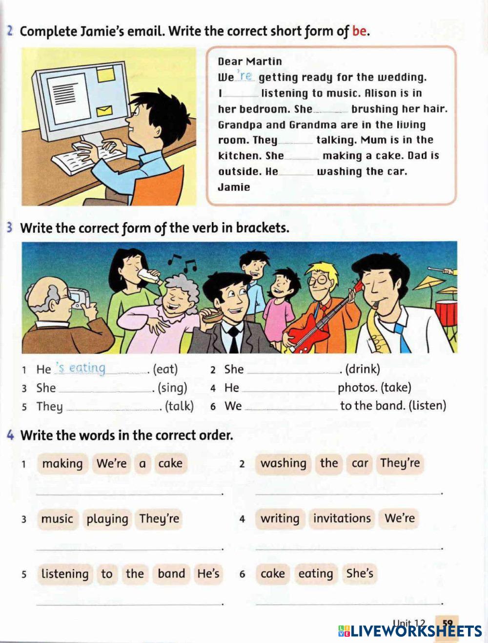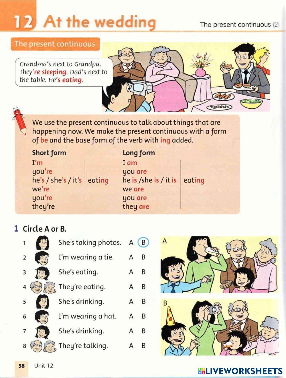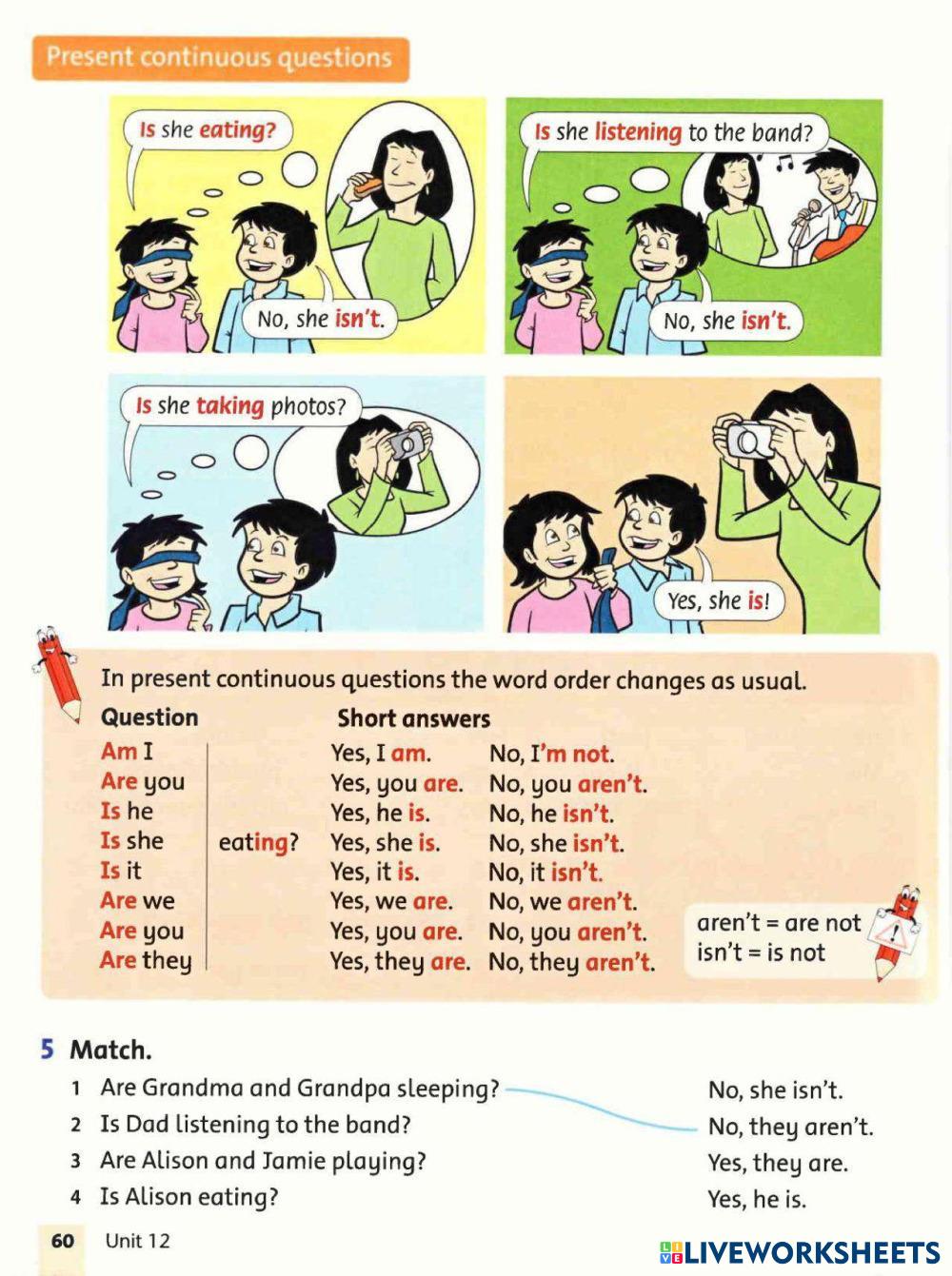 Created byMissili Ann ESL English A1 Grammar English Author's Instructions ... My Google Classroom Courses × 0 classes selected (0 students total) Quick Access Select all classes (0 classes) All Classes Loading courses... Cancel Share Share to selected Course __COURSE_NAME__ __STUDENT_NAME__ (__STUDENT_EMAIL__) Present Continuous - Grammar Friends Download Worksheet Validation Check my answers Emails my answers to my teacher Full name Group/level School subject Teacher's email or key code Close Submit Validating worksheet... (12) Your answers have been sent to your teacher. Good luck! OK We encountered an error submitting your answers. Please try again. OK Advertisement | Go Ad Free Created byMissili Ann ESL English A1 Grammar English Author's Instructions ... Explore Worksheets Routine or now ESL A1 Routine or now Grammar - ESL Decide if the sentence describes a routine or an action happening now. Write an SP (simple present) or P (progressive) in front of the sentence ADVERBS OF FREQUENCY BY EFC ESL A1 ADVERBS OF FREQUENCY BY EFC Grammar - ESL READ AND FOLLOW THE INSTRUCTIONS. Exercise 16 Week 6 ESL A1 Exercise 16 Week 6 Grammar - ESL Read carefully and complete the exercise. Seasons, weather and clothes ESL A1 Seasons, weather and clothes Grammar - ESL Read each part carefully and solve the exercises