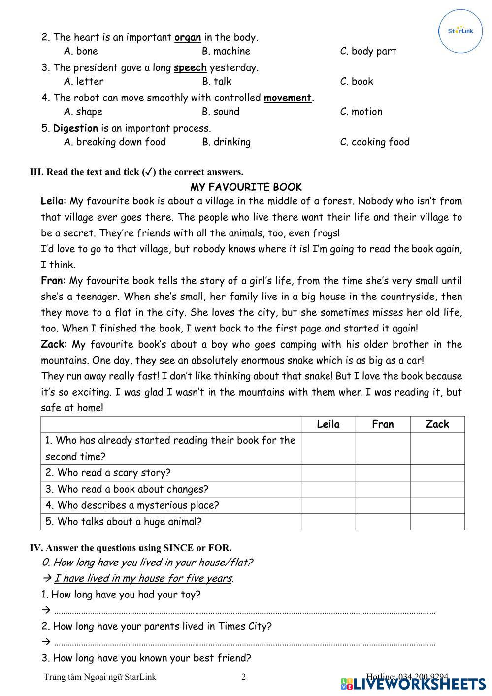 Created by starlink_s5 ESL English A2 Grammar English Author's Instructions Foreign Teacher_S5_W30_U5&6_Vocabulary Revision My Google Classroom Courses × 0 classes selected (0 students total) Quick Access Select all classes (0 classes) All Classes Loading courses... Cancel Share Share to selected Course __COURSE_NAME__ __STUDENT_NAME__ (__STUDENT_EMAIL__) Foreign Teacher_S5_W30_U5&6_Vocabulary Revision Download Worksheet Validation Check my answers Emails my answers to my teacher Full name Group/level School subject Teacher's email or key code Close Submit Validating worksheet... (12) Your answers have been sent to your teacher. Good luck! OK We encountered an error submitting your answers. Please try again. OK Advertisement | Go Ad Free Created by starlink_s5 ESL English A2 Grammar English Author's Instructions Foreign Teacher_S5_W30_U5&6_Vocabulary Revision Explore Worksheets Simple Past Tense (Regular Verbs) ESL A2 Simple Past Tense (Regular Verbs) Grammar - ESL English as a second language Past simple regular verbs Based on CEFR Comparatives and superlatives review - 2nd of ESO with Mathew ESL A2 Comparatives and superlatives review - 2nd of ESO with Mathew Grammar - ESL Test your knowledge of comparatives and superlatives! Present Simple ESL A2 Present Simple Grammar - ESL English as a second language Present Simple exercices Present simple affirmative and negative ESL A2 Present simple affirmative and negative Grammar - ESL English as a second language This worksheet is not my product, I've just made it interactive. Main content: Present Simple