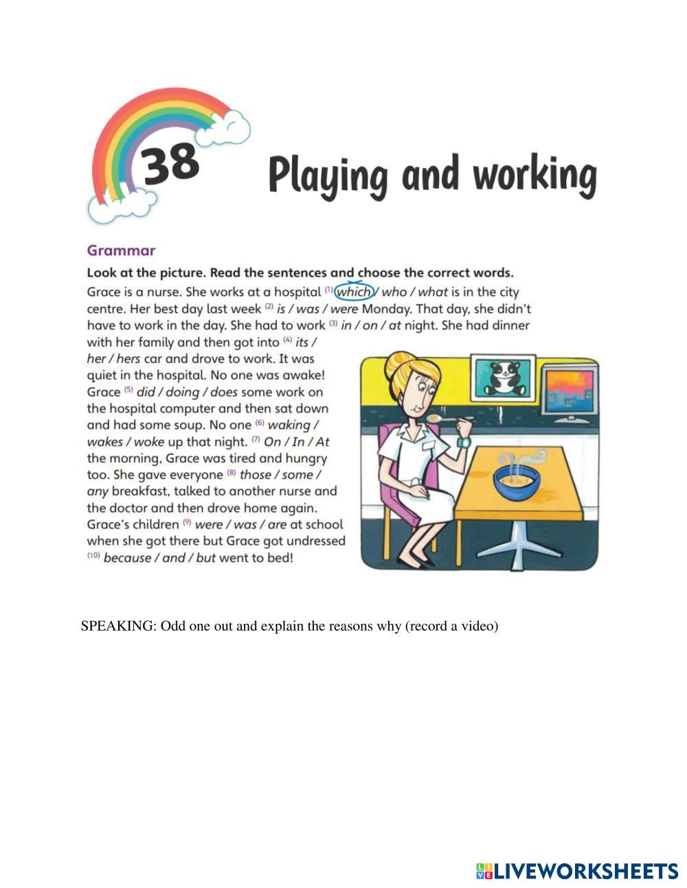 Created byNgoc Bao Nguyen ESL English A1 Grammar English Author's Instructions Homework My Google Classroom Courses × 0 classes selected (0 students total) Quick Access Select all classes (0 classes) All Classes Loading courses... Cancel Share Share to selected Course __COURSE_NAME__ __STUDENT_NAME__ (__STUDENT_EMAIL__) Fun for movers Unit 38 Download Worksheet Validation Check my answers Emails my answers to my teacher Full name Group/level School subject Teacher's email or key code Close Submit Validating worksheet... (12) Your answers have been sent to your teacher. Good luck! OK We encountered an error submitting your answers. Please try again. OK Advertisement | Go Ad Free Created byNgoc Bao Nguyen ESL English A1 Grammar English Author's Instructions Homework Explore Worksheets “Be Going To” – Future Plans & Predictions Worksheet ESL A1 “Be Going To” – Future Plans & Predictions Worksheet Grammar - ESL Interactive worksheet para practicar el uso de BE GOING TO en inglés. Los estudiantes completan oraciones y hacen predicciones según distintas situaciones. Routine or now ESL A1 Routine or now Grammar - ESL Decide if the sentence describes a routine or an action happening now. Write an SP (simple present) or P (progressive) in front of the sentence ADVERBS OF FREQUENCY BY EFC ESL A1 ADVERBS OF FREQUENCY BY EFC Grammar - ESL READ AND FOLLOW THE INSTRUCTIONS. Present Continuous - Grammar Friends ESL A1 Present Continuous - Grammar Friends Grammar - ESL ...
