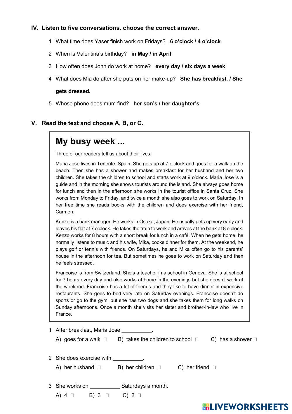 Created byINGRID MENDOZA ESL English, British A1 Grammar English Author's Instructions DEVELOP FOUR SKILLS My Google Classroom Courses × 0 classes selected (0 students total) Quick Access Select all classes (0 classes) All Classes Loading courses... Cancel Share Share to selected Course __COURSE_NAME__ __STUDENT_NAME__ (__STUDENT_EMAIL__) FINAL ELEMENTARY IV Download Worksheet Validation Check my answers Emails my answers to my teacher Full name Group/level School subject Teacher's email or key code Close Submit Validating worksheet... (12) Your answers have been sent to your teacher. Good luck! OK We encountered an error submitting your answers. Please try again. OK Advertisement | Go Ad Free Created byINGRID MENDOZA ESL English, British A1 Grammar English Author's Instructions DEVELOP FOUR SKILLS Explore Worksheets 3º Unit 4 Repàs ESL A1 3º Unit 4 Repàs Grammar - ESL Repàs per als alumnes de 3er FINAL ELEMENTARY IV ESL A1 FINAL ELEMENTARY IV Grammar - ESL DEVELOP FOUR SKILLS QUIZ ELEMENTARY IV ESL A1 QUIZ ELEMENTARY IV Grammar - ESL DEVELOP GRAMMAR AD VOCABULARY PRESENT CONTINUOUS PRACTICE ESL A1 PRESENT CONTINUOUS PRACTICE Grammar - ESL Present continuous practice