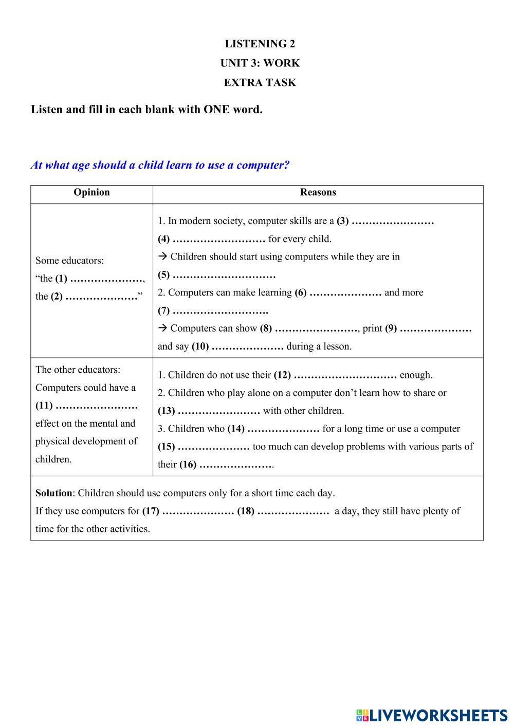 Created byCHAU NGUYEN ESL English B1 Listening English Author's Instructions NGHE 2-U4-EXTRA TASK My Google Classroom Courses × 0 classes selected (0 students total) Quick Access Select all classes (0 classes) All Classes Loading courses... Cancel Share Share to selected Course __COURSE_NAME__ __STUDENT_NAME__ (__STUDENT_EMAIL__) NGHE 2-U4-EXTRA TASK Download Worksheet Validation Check my answers Emails my answers to my teacher Full name Group/level School subject Teacher's email or key code Close Submit Validating worksheet... (12) Your answers have been sent to your teacher. Good luck! OK We encountered an error submitting your answers. Please try again. OK Advertisement | Go Ad Free Created byCHAU NGUYEN ESL English B1 Listening English Author's Instructions NGHE 2-U4-EXTRA TASK Explore Worksheets Listening 19 ESL B1 Listening 19 Listening - ESL Take screenshots of your homework! Listening Ex. > Spelling Cities and Names ESL B1 Listening Ex. > Spelling Cities and Names Listening - ESL Listen and spell correctly the words you hear. Sunday Bloody Sunday B1 Listening Ireland St. Patrick's Day ESL B1 Sunday Bloody Sunday B1 Listening Ireland St. Patrick's Day Listening - ESL Listen and click the correct words. We are doing this as part of our Saint Patrick's Day activities Mini Listening Test ESL B1 Mini Listening Test Listening - ESL Choose the correct answer