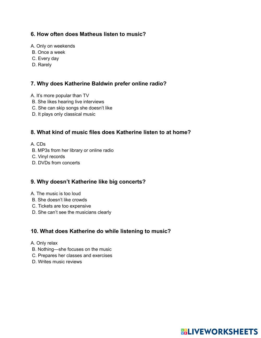 Created by thuydtp ESL English A1-Beginner Reading English Author's Instructions Reading and answer the questions My Google Classroom Courses × 0 classes selected (0 students total) Quick Access Select all classes (0 classes) All Classes Loading courses... Cancel Share Share to selected Course __COURSE_NAME__ __STUDENT_NAME__ (__STUDENT_EMAIL__) U2 - Reading Download Worksheet Validation Check my answers Emails my answers to my teacher Full name Group/level School subject Teacher's email or key code Close Submit Validating worksheet... (12) Your answers have been sent to your teacher. Good luck! OK We encountered an error submitting your answers. Please try again. OK Advertisement | Go Ad Free Created by thuydtp ESL English A1-Beginner Reading English Author's Instructions Reading and answer the questions Explore Worksheets Movie Magic Cloze B2 Film Cinema Linkers & Contrast words ESL A1-Beginner Movie Magic Cloze B2 Film Cinema Linkers & Contrast words Reading - ESL Read the text and choose the the correct word for each blank. The focus is on linkers and contrast words. PU1-U7 Let's play P87 ESL A1-Beginner PU1-U7 Let's play P87 Reading - ESL HW FFs1 - Unit 6 ESL A1-Beginner FFs1 - Unit 6 Reading - ESL starter ENGLISH PRACTIS ESL A1-Beginner ENGLISH PRACTIS Reading - ESL Favor de trabajar en estos temas de la asignatura de inglés. Debe leer bien y luego contestar. Al final podrás visualizar un cuadro donde se refleja un resumen de los puntos desglosados en la prácrica.