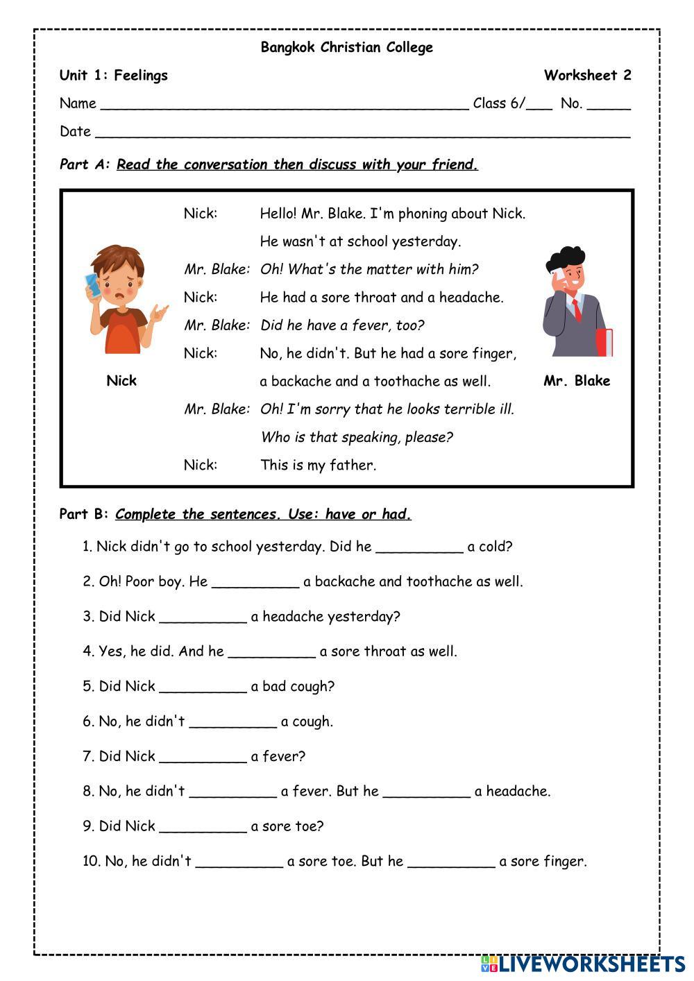 Created bySantita ESL English A2-Elementary Reading English Author's Instructions Write the correct answer. My Google Classroom Courses × 0 classes selected (0 students total) Quick Access Select all classes (0 classes) All Classes Loading courses... Cancel Share Share to selected Course __COURSE_NAME__ __STUDENT_NAME__ (__STUDENT_EMAIL__) Feelings ws 2 G.6 Download Worksheet Validation Check my answers Emails my answers to my teacher Full name Group/level School subject Teacher's email or key code Close Submit Validating worksheet... (12) Your answers have been sent to your teacher. Good luck! OK We encountered an error submitting your answers. Please try again. OK Advertisement | Go Ad Free Created bySantita ESL English A2-Elementary Reading English Author's Instructions Write the correct answer. Explore Worksheets GXPA2U0_WB_P006_007 - CLASS 2 ESL A2-Elementary GXPA2U0_WB_P006_007 - CLASS 2 Reading - ESL COMPLETE THE WORKSHEET Relationship ESL A2-Elementary Relationship Reading - ESL Read and match the definitions. Thanksgiving Quiz - ESL Worksheet for 5th Grade ESL A2-Elementary Thanksgiving Quiz - ESL Worksheet for 5th Grade Reading - ESL Thanks to this ESL worksheet for 5th-grade, your students will practice their understanding of Thanksgiving by choosing the right option in multiple-choice questions. the mata mata turtle ESL A2-Elementary the mata mata turtle Reading - ESL Ss choose the correct option from a,b,c or d