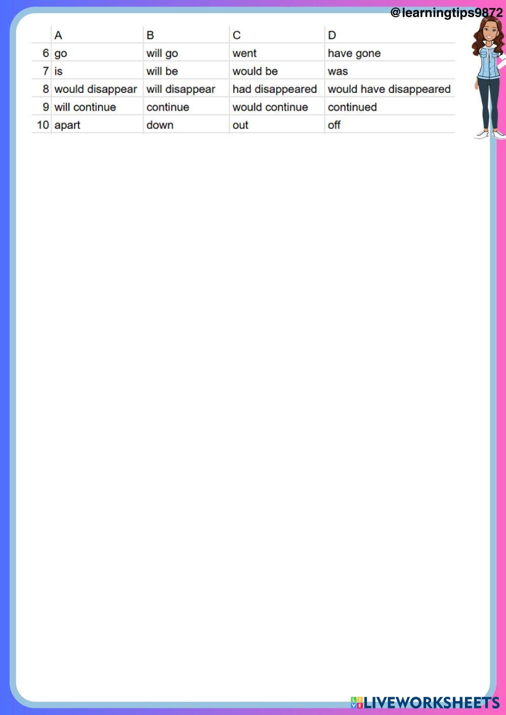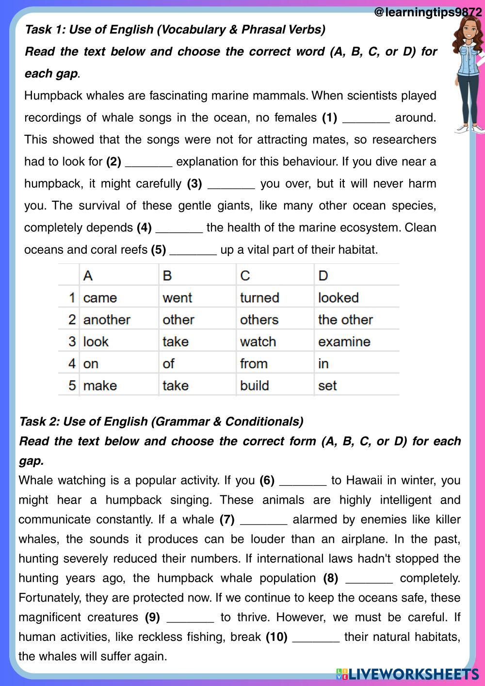 Created byYuliia Kharchenko ESL English B1 Reading English Author's Instructions Reading My Google Classroom Courses × 0 classes selected (0 students total) Quick Access Select all classes (0 classes) All Classes Loading courses... Cancel Share Share to selected Course __COURSE_NAME__ __STUDENT_NAME__ (__STUDENT_EMAIL__) Use of English +Reading Download Worksheet Validation Check my answers Emails my answers to my teacher Full name Group/level School subject Teacher's email or key code Close Submit Validating worksheet... (12) Your answers have been sent to your teacher. Good luck! OK We encountered an error submitting your answers. Please try again. OK Advertisement | Go Ad Free Created byYuliia Kharchenko ESL English B1 Reading English Author's Instructions Reading Explore Worksheets Reading 2 ESL B1 Reading 2 Reading - ESL Take screenshots of your work! B1 Preliminary for Schools Trainer 2020 (PET Test 3 Reading) ESL B1 B1 Preliminary for Schools Trainer 2020 (PET Test 3 Reading) Reading - ESL Read and follow the instructions on the test. Community: ESL Reading Comprehension Worksheet ESL B1 Community: ESL Reading Comprehension Worksheet Reading - ESL This B1-level ESL worksheet offers an accessible reading comprehension text, but it also introduces abstract ideas like belonging, cooperation, and challenges, which are exactly what students need before fully engaging in B2 tasks. Mini test 2 - Reading task - Comprehensive course ESL B1 Mini test 2 - Reading task - Comprehensive course Reading - ESL Cam 18 test 3 passage 2