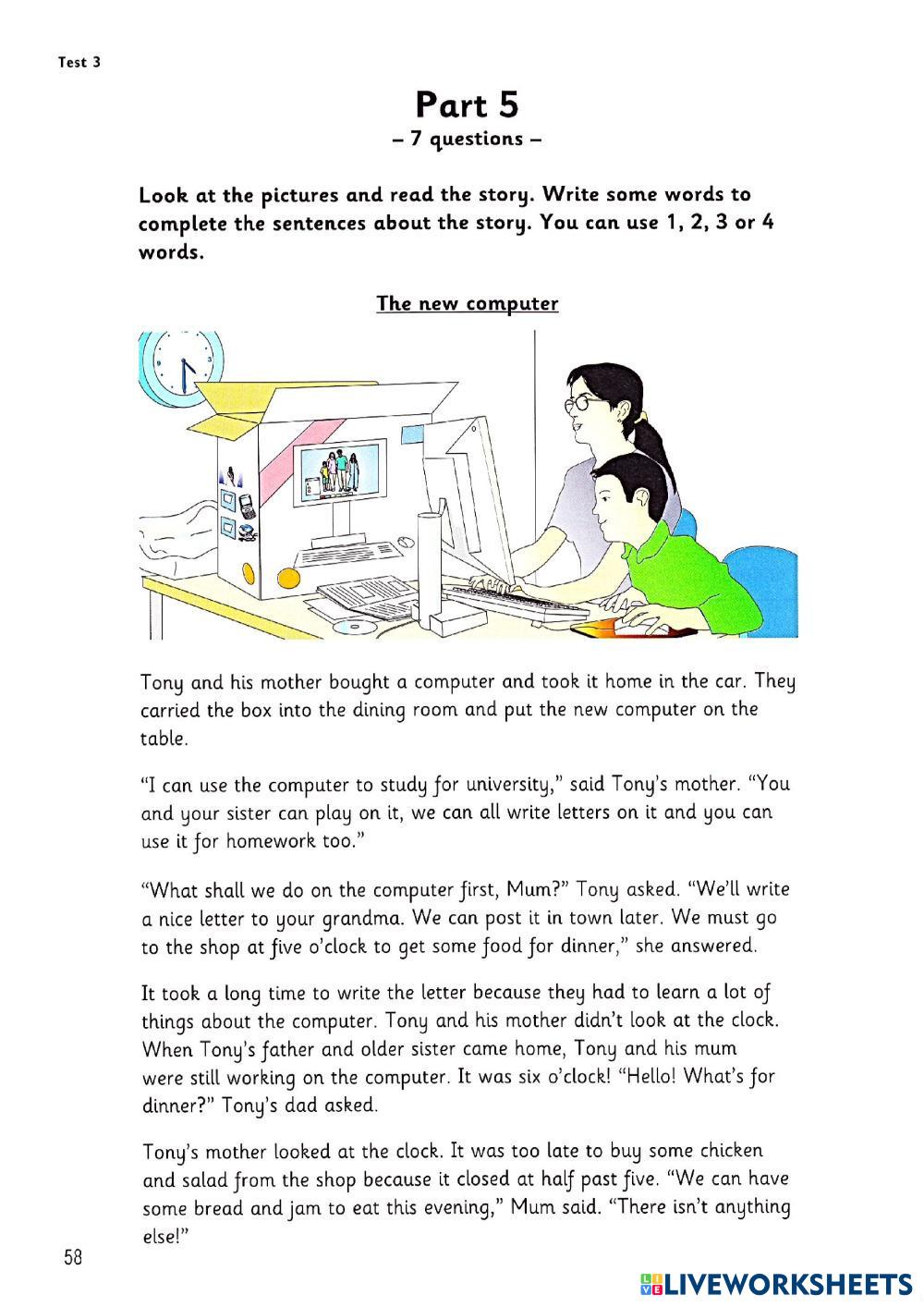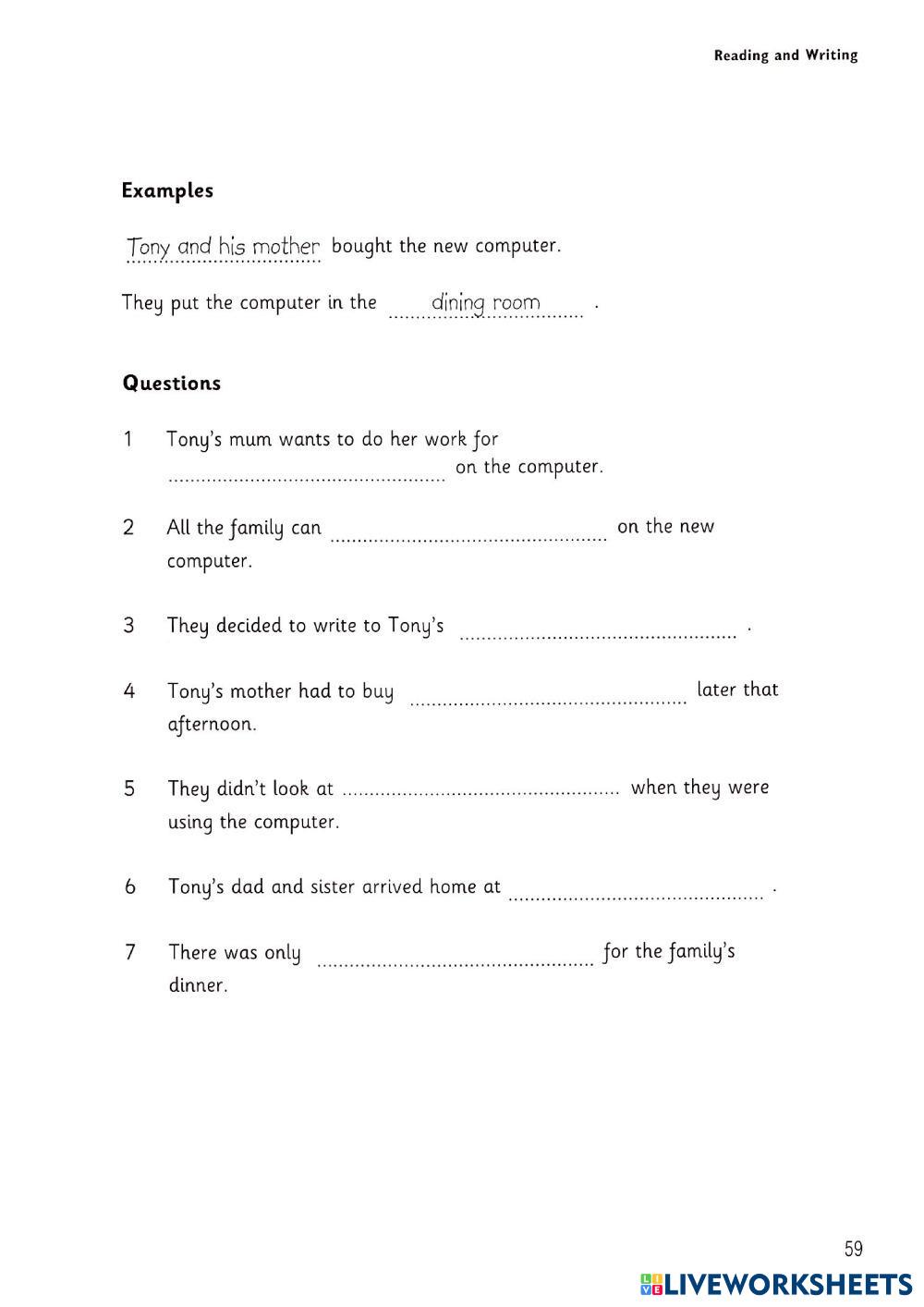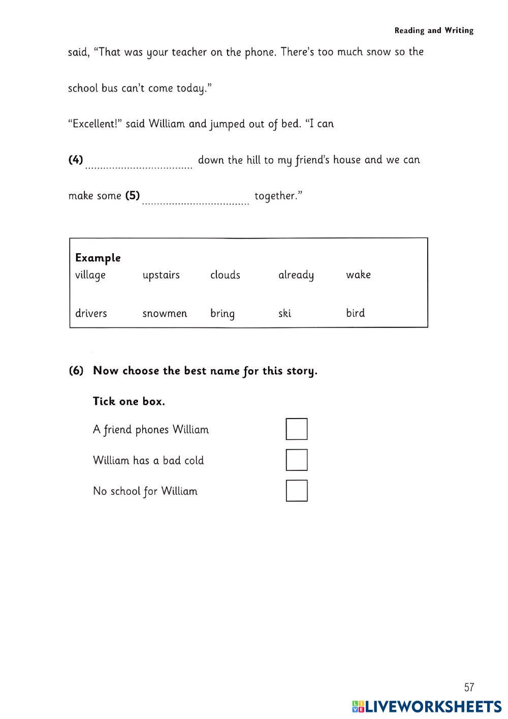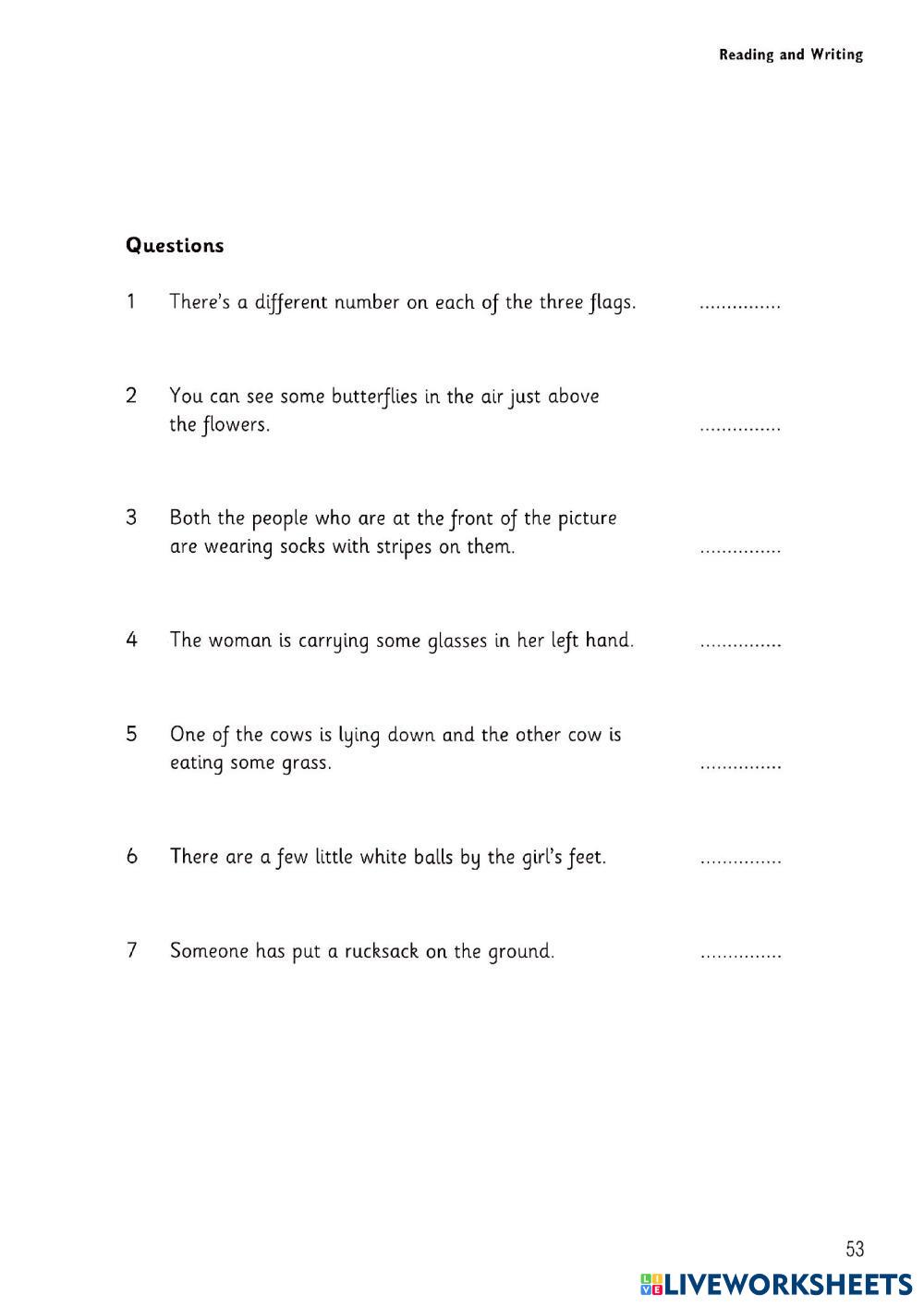 Created byQuach Phuoc Tien ESL English A2 Reading English Author's Instructions Reading materials My Google Classroom Courses × 0 classes selected (0 students total) Quick Access Select all classes (0 classes) All Classes Loading courses... Cancel Share Share to selected Course __COURSE_NAME__ __STUDENT_NAME__ (__STUDENT_EMAIL__) Flyers6t3read Download Worksheet Validation Check my answers Emails my answers to my teacher Full name Group/level School subject Teacher's email or key code Close Submit Validating worksheet... (12) Your answers have been sent to your teacher. Good luck! OK We encountered an error submitting your answers. Please try again. OK Advertisement | Go Ad Free Created byQuach Phuoc Tien ESL English A2 Reading English Author's Instructions Reading materials Explore Worksheets Inbal's Blog ESL A2 Inbal's Blog Reading - ESL Read the text and answer the questions. Relationship ESL A2 Relationship Reading - ESL Read and match the definitions. The Magic Shop A2 Shopping ESL A2 The Magic Shop A2 Shopping Reading - ESL Read the story and answer the questions. Tom's BIrthday A2 Reader Shopping ESL A2 Tom's BIrthday A2 Reader Shopping Reading - ESL Read the story and answer the questions.