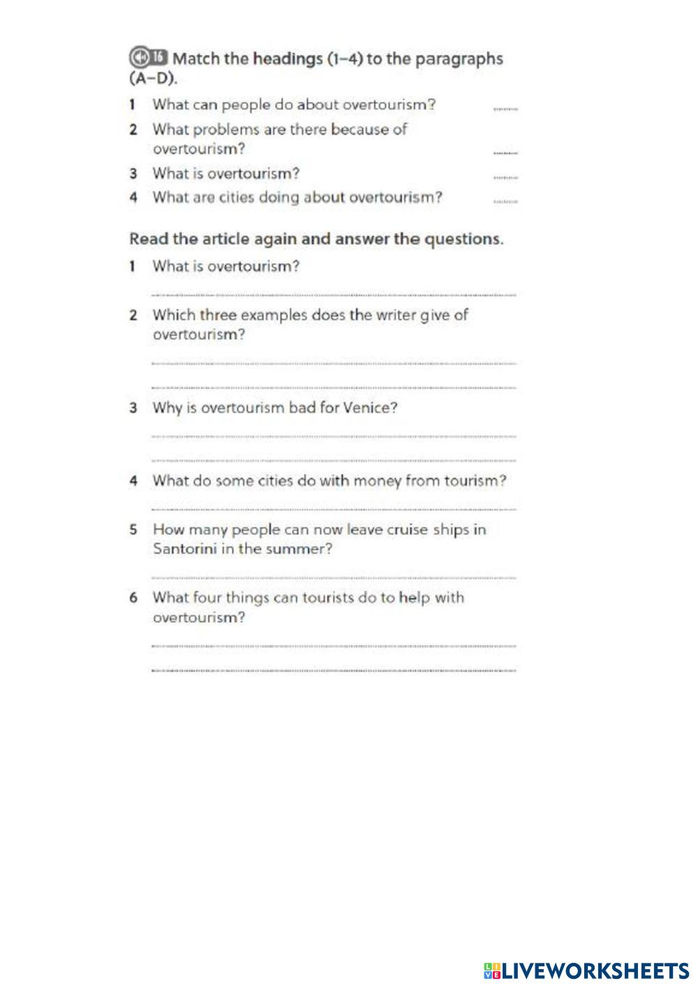 Created by Evika09 ESL English A2 Reading English Author's Instructions Complete. My Google Classroom Courses × 0 classes selected (0 students total) Quick Access Select all classes (0 classes) All Classes Loading courses... Cancel Share Share to selected Course __COURSE_NAME__ __STUDENT_NAME__ (__STUDENT_EMAIL__) Travelling Download Worksheet Validation Check my answers Emails my answers to my teacher Full name Group/level School subject Teacher's email or key code Close Submit Validating worksheet... (12) Your answers have been sent to your teacher. Good luck! OK We encountered an error submitting your answers. Please try again. OK Advertisement | Go Ad Free Created by Evika09 ESL English A2 Reading English Author's Instructions Complete. Explore Worksheets Reading a recipe ESL A2 Reading a recipe Reading - ESL Complete the activities Reading comprehension ESL A2 Reading comprehension Reading - ESL Choose the right answer Homework 05: Monsters University ESL A2 Homework 05: Monsters University Reading - ESL Choose the right answer 3. 1. SUMMER SCHOOL ESL A2 3. 1. SUMMER SCHOOL Reading - ESL Please complete the exercises that we previously worked on in the classroom.