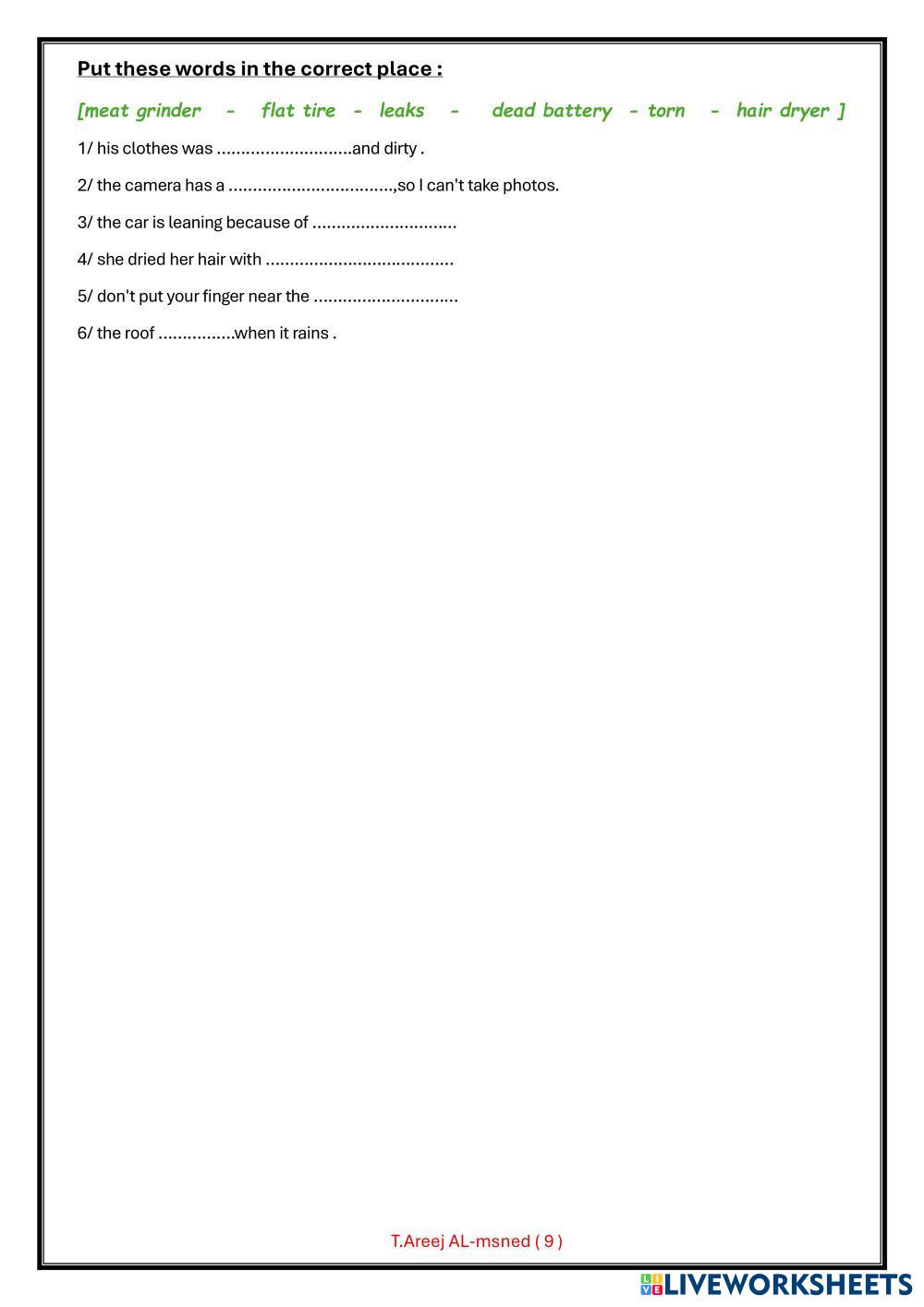 Created by AreejM ESL English B2 Vocabulary English Author's Instructions vocab My Google Classroom Courses × 0 classes selected (0 students total) Quick Access Select all classes (0 classes) All Classes Loading courses... Cancel Share Share to selected Course __COURSE_NAME__ __STUDENT_NAME__ (__STUDENT_EMAIL__) mega goal 1.2 vocabulary Download Worksheet Validation Check my answers Emails my answers to my teacher Full name Group/level School subject Teacher's email or key code Close Submit Validating worksheet... (12) Your answers have been sent to your teacher. Good luck! OK We encountered an error submitting your answers. Please try again. OK Advertisement | Go Ad Free Created by AreejM ESL English B2 Vocabulary English Author's Instructions vocab Explore Worksheets TRS601 – ALL – REVIEW 1 ESL B2 TRS601 – ALL – REVIEW 1 Vocabulary - ESL do it Reading Strategies Vocabulary B2 Education ESL B2 Reading Strategies Vocabulary B2 Education Vocabulary - ESL Read the sentences and fill in the blank with the vocabulary words in the blank. ETHICAL BUSINESS (Phrasal verbs) ESL B2 ETHICAL BUSINESS (Phrasal verbs) Vocabulary - ESL Work on these activities to practice the use of phrasal verbs to talk about ethical business. TRS601 - Part 2 ESL B2 TRS601 - Part 2 Vocabulary - ESL Do it