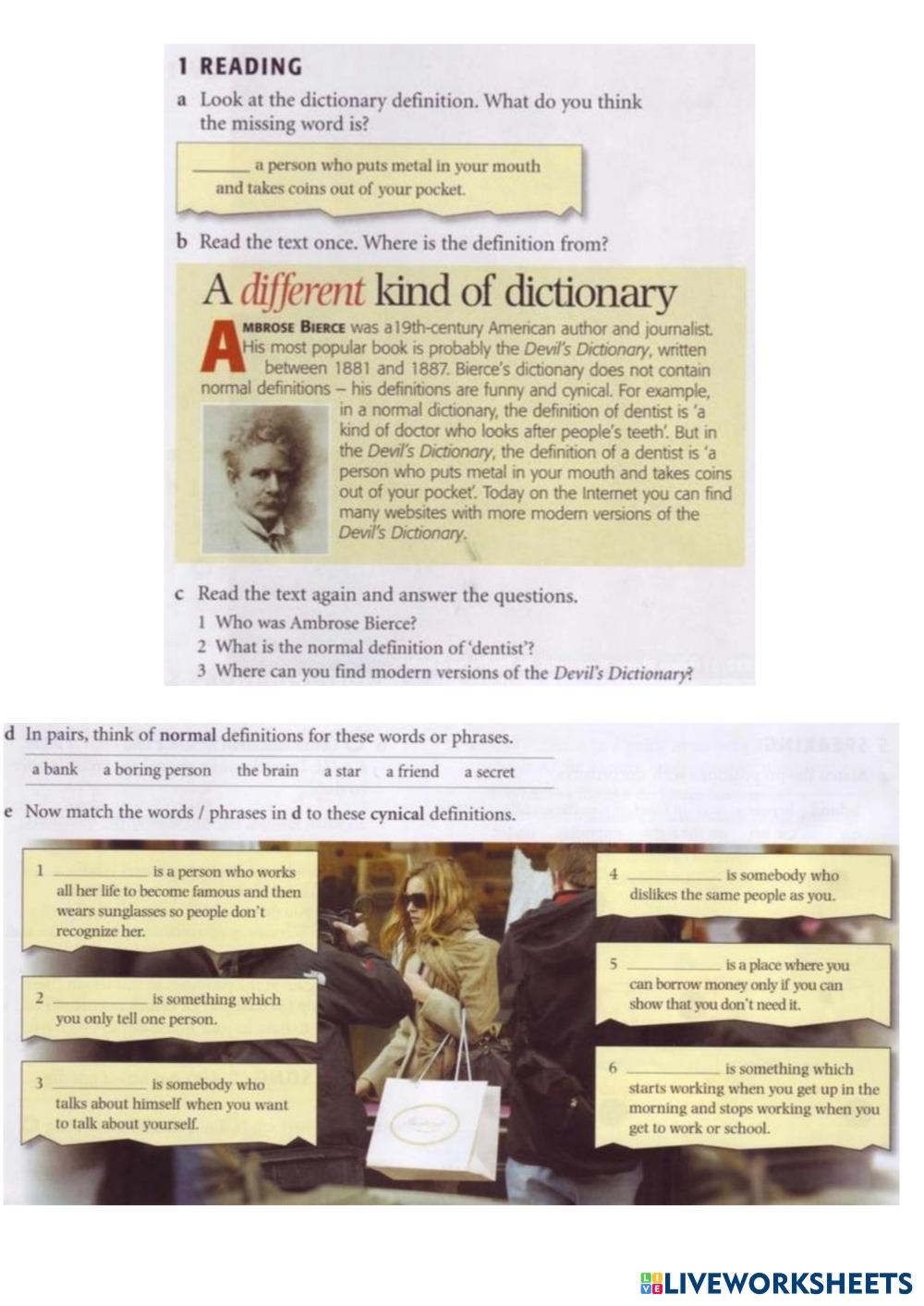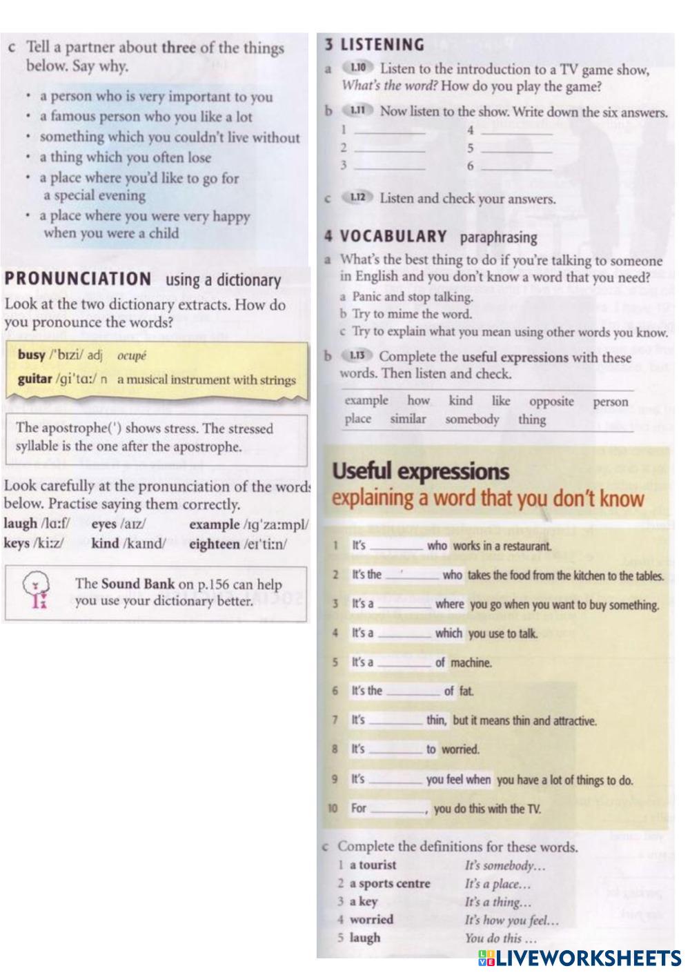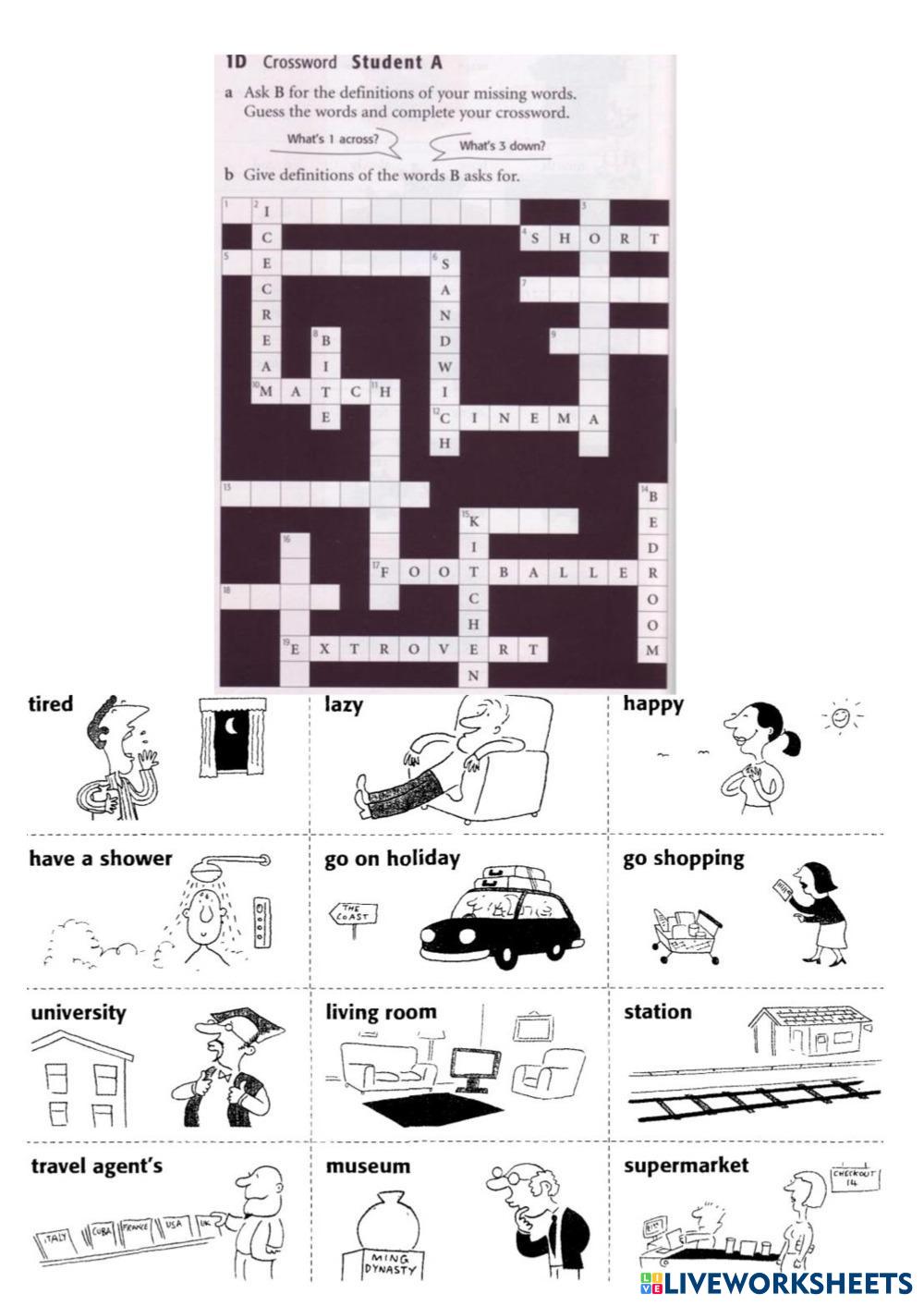 Created byZhenya Dimitrova ESL English, British A2 Vocabulary English Author's Instructions match My Google Classroom Courses × 0 classes selected (0 students total) Quick Access Select all classes (0 classes) All Classes Loading courses... Cancel Share Share to selected Course __COURSE_NAME__ __STUDENT_NAME__ (__STUDENT_EMAIL__) ISP3 lesson 1D Download Worksheet Validation Check my answers Emails my answers to my teacher Full name Group/level School subject Teacher's email or key code Close Submit Validating worksheet... (12) Your answers have been sent to your teacher. Good luck! OK We encountered an error submitting your answers. Please try again. OK Advertisement | Go Ad Free Created byZhenya Dimitrova ESL English, British A2 Vocabulary English Author's Instructions match Explore Worksheets 3А ESL A2 3А Vocabulary - ESL do the task Jobs and professions ESL A2 Jobs and professions Vocabulary - ESL Look at the pictures and write the correct word. Telling the time ESL A2 Telling the time Vocabulary - ESL Do all the exercises in the handout telling The Time ESL A2 telling The Time Vocabulary - ESL Followinf the instruction on the handout to complete the activities.