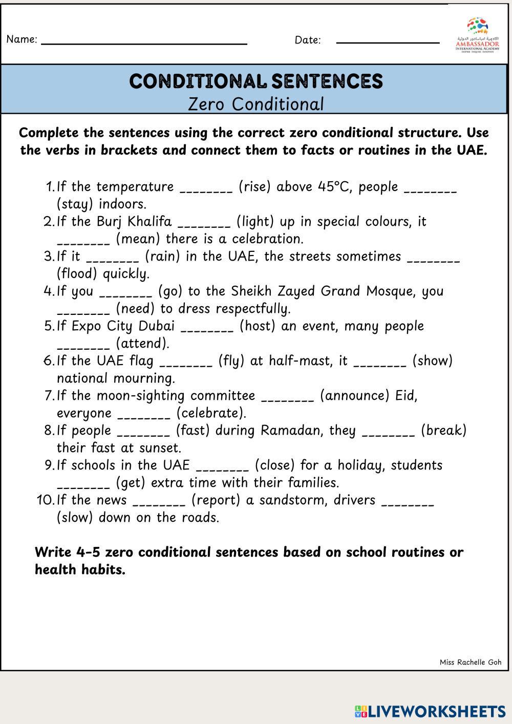Complete the sentences using the correct zero conditional structure. Use the verbs in brackets and connect them to facts or routines in the UAE.