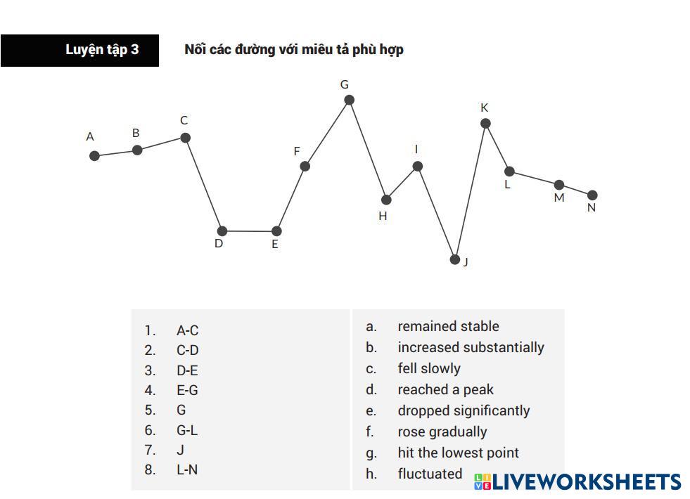 Created by xeko_lad ESL English B1-Intermediate Writing English Author's Instructions Nối các đường với miêu tả phù hợp My Google Classroom Courses × 0 classes selected (0 students total) Quick Access Select all classes (0 classes) All Classes Loading courses... Cancel Share Share to selected Course __COURSE_NAME__ __STUDENT_NAME__ (__STUDENT_EMAIL__) Writing Task 1 Vocabulary Practice Download Worksheet Validation Check my answers Emails my answers to my teacher Full name Group/level School subject Teacher's email or key code Close Submit Validating worksheet... (12) Your answers have been sent to your teacher. Good luck! OK We encountered an error submitting your answers. Please try again. OK Advertisement | Go Ad Free Created by xeko_lad ESL English B1-Intermediate Writing English Author's Instructions Nối các đường với miêu tả phù hợp Explore Worksheets EVOLVE 5 B2 LESSON 2.4 ESL B1-Intermediate EVOLVE 5 B2 LESSON 2.4 Writing - ESL COMPLETE EVOLVE 5 B2 LESSON 2.4 ESL B1-Intermediate EVOLVE 5 B2 LESSON 2.4 Writing - ESL COMPLETE Writing B1 exercises ESL B1-Intermediate Writing B1 exercises Writing - ESL Read the tet and answer the questions Writing ESL B1-Intermediate Writing Writing - ESL Food and Drinks