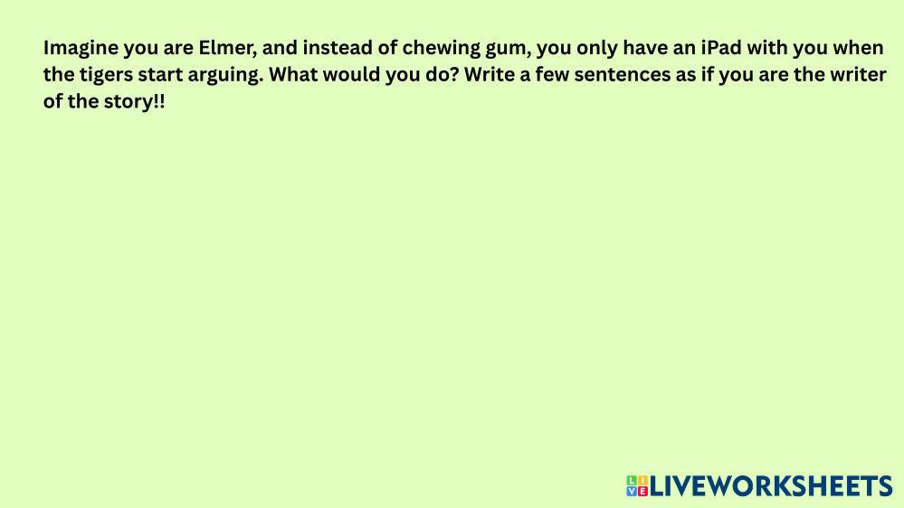 Created byHeather Flood ESL Korean A1-Beginner Writing English Author's Instructions writing My Google Classroom Courses × 0 classes selected (0 students total) Quick Access Select all classes (0 classes) All Classes Loading courses... Cancel Share Share to selected Course __COURSE_NAME__ __STUDENT_NAME__ (__STUDENT_EMAIL__) Heywon Download Worksheet Validation Check my answers Emails my answers to my teacher Full name Group/level School subject Teacher's email or key code Close Submit Validating worksheet... (12) Your answers have been sent to your teacher. Good luck! OK We encountered an error submitting your answers. Please try again. OK Advertisement | Go Ad Free Created byHeather Flood ESL Korean A1-Beginner Writing English Author's Instructions writing Explore Worksheets Hangul 1 ESL A1-Beginner Hangul 1 Writing - ESL Read the instructions English ESL A1-Beginner English Writing - ESL Use the new vocabulary to write descriptions. Parts of a sentence ESL A1-Beginner Parts of a sentence Writing - ESL practice 6학년 쓰기 ESL A1-Beginner 6학년 쓰기 Writing - ESL 6학년 쓰기