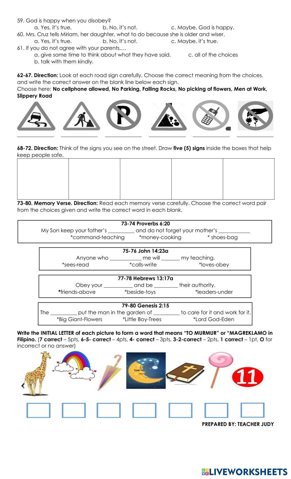 Read each direction and question carefully before answering. Follow the instructions in every part of the worksheet. Make sure you have read and answered all the items. You are given only one chance to complete and submit your answers.