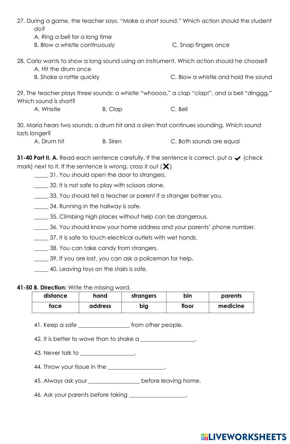 Read each direction and question carefully before answering. Follow the instructions in every part of the worksheet. Make sure you have read and answered all the items. You are given only one chance to complete and submit your answers.