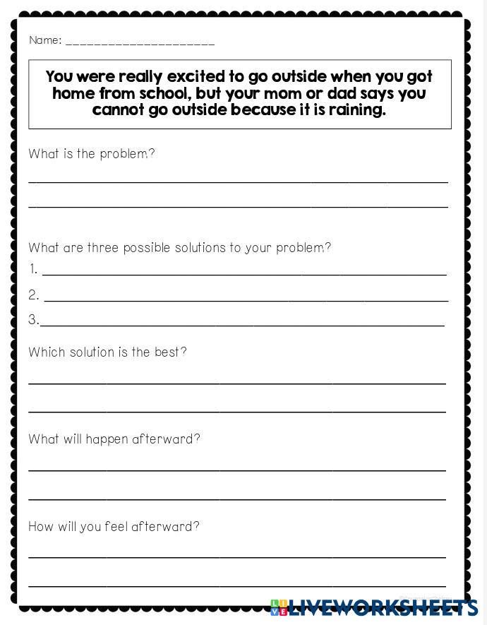 Created by michaeladykhouse ESL English B1 Writing English Author's Instructions Fill in the blanks. My Google Classroom Courses × 0 classes selected (0 students total) Quick Access Select all classes (0 classes) All Classes Loading courses... Cancel Share Share to selected Course __COURSE_NAME__ __STUDENT_NAME__ (__STUDENT_EMAIL__) Decision Making Download Worksheet Validation Check my answers Emails my answers to my teacher Full name Group/level School subject Teacher's email or key code Close Submit Validating worksheet... (12) Your answers have been sent to your teacher. Good luck! OK We encountered an error submitting your answers. Please try again. OK Advertisement | Go Ad Free Created by michaeladykhouse ESL English B1 Writing English Author's Instructions Fill in the blanks. Explore Worksheets B1 Preliminary Sample Test Writing (2022) ESL B1 B1 Preliminary Sample Test Writing (2022) Writing - ESL Follow the instructions Writing B1 3 exercises 3 ESL B1 Writing B1 3 exercises 3 Writing - ESL Read the questions and write the essay Unit 6 - Lesson 9 - Unit Test ESL B1 Unit 6 - Lesson 9 - Unit Test Writing - ESL Complete the worksheet. An informal email ESL B1 An informal email Writing - ESL Prepare 8 Unit 15