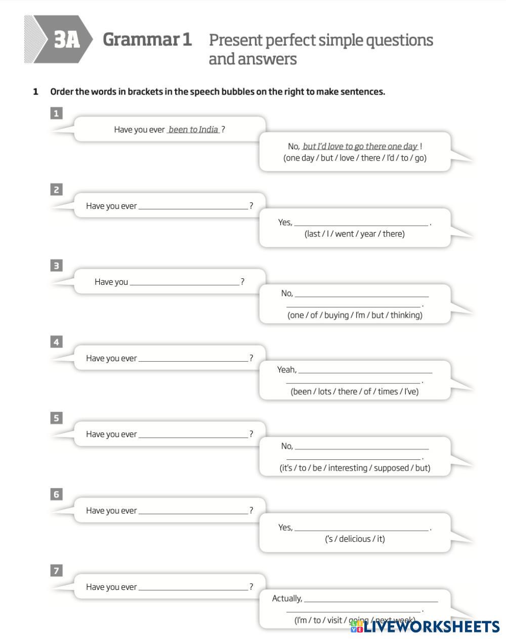 Created byThe Touchstone Academy ESL Present perfect simple questions and answers Age 18-16 level: B1+ English Author's Instructions My Google Classroom Courses × 0 classes selected (0 students total) Quick Access Select all classes (0 classes) All Classes Loading courses... Cancel Share Share to selected Course __COURSE_NAME__ __STUDENT_NAME__ (__STUDENT_EMAIL__) Roadmap B1+ 3A Download Worksheet Validation Check my answers Emails my answers to my teacher Full name Group/level School subject Teacher's email or key code Close Submit Validating worksheet... (12) Your answers have been sent to your teacher. Good luck! OK We encountered an error submitting your answers. Please try again. OK Advertisement | Go Ad Free Created byThe Touchstone Academy ESL Present perfect simple questions and answers Age 18-16 level: B1+ English Author's Instructions