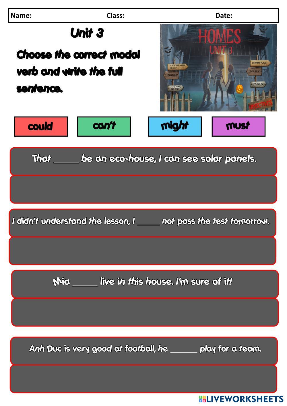 Created byDave Billinge ESL Modal verbs Age 7-11 level: Grade 3 English Author's Instructions My Google Classroom Courses × 0 classes selected (0 students total) Quick Access Select all classes (0 classes) All Classes Loading courses... Cancel Share Share to selected Course __COURSE_NAME__ __STUDENT_NAME__ (__STUDENT_EMAIL__) Unit 3 Grammar Download Worksheet Validation Check my answers Emails my answers to my teacher Full name Group/level School subject Teacher's email or key code Close Submit Validating worksheet... (12) Your answers have been sent to your teacher. Good luck! OK We encountered an error submitting your answers. Please try again. OK Advertisement | Go Ad Free Created byDave Billinge ESL Modal verbs Age 7-11 level: Grade 3 English Author's Instructions