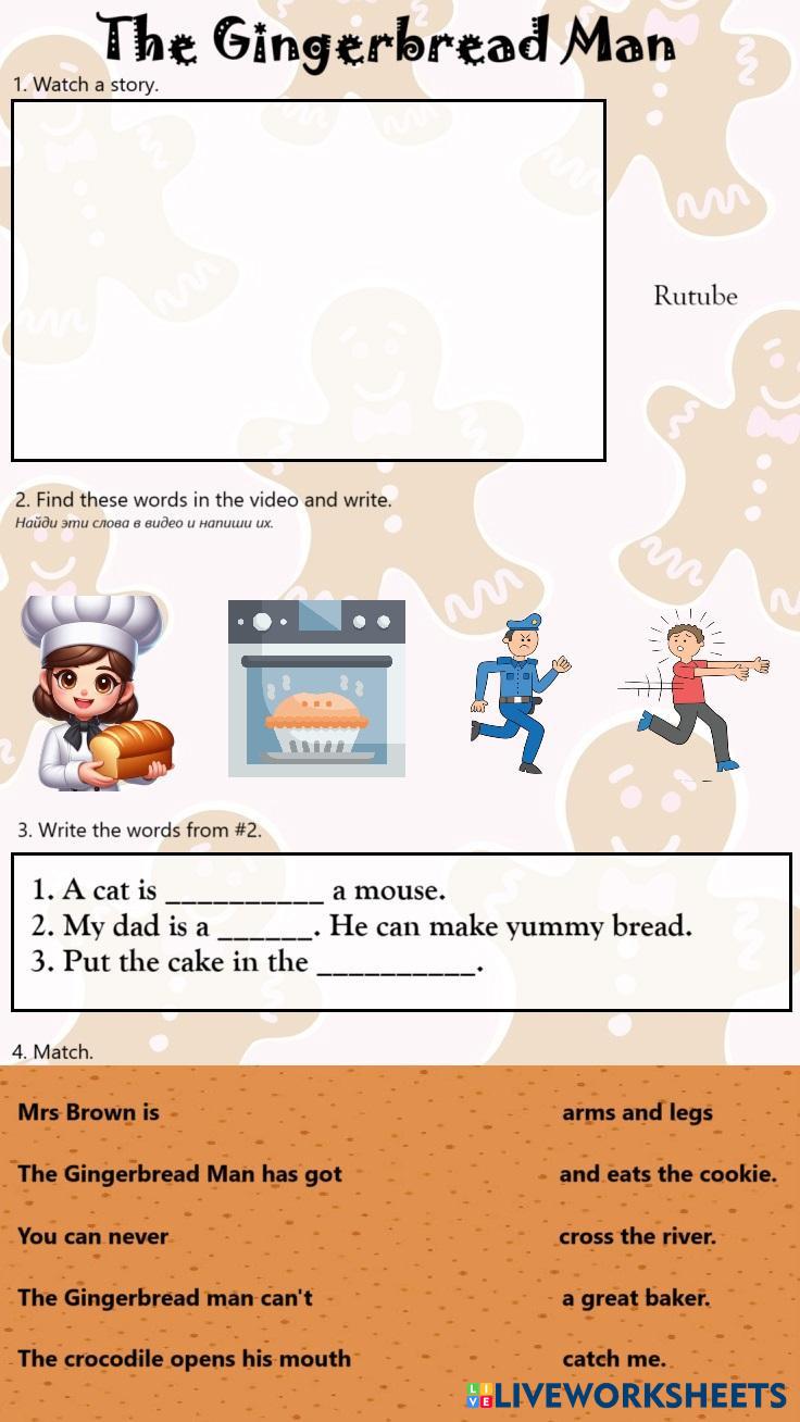 Created byRoyal ESL Listening comprehension Age 6-16 level: elementary English Author's Instructions My Google Classroom Courses × 0 classes selected (0 students total) Quick Access Select all classes (0 classes) All Classes Loading courses... Cancel Share Share to selected Course __COURSE_NAME__ __STUDENT_NAME__ (__STUDENT_EMAIL__) Gingerbread man story Download Worksheet Validation Check my answers Emails my answers to my teacher Full name Group/level School subject Teacher's email or key code Close Submit Validating worksheet... (12) Your answers have been sent to your teacher. Good luck! OK We encountered an error submitting your answers. Please try again. OK Advertisement | Go Ad Free Created byRoyal ESL Listening comprehension Age 6-16 level: elementary English Author's Instructions