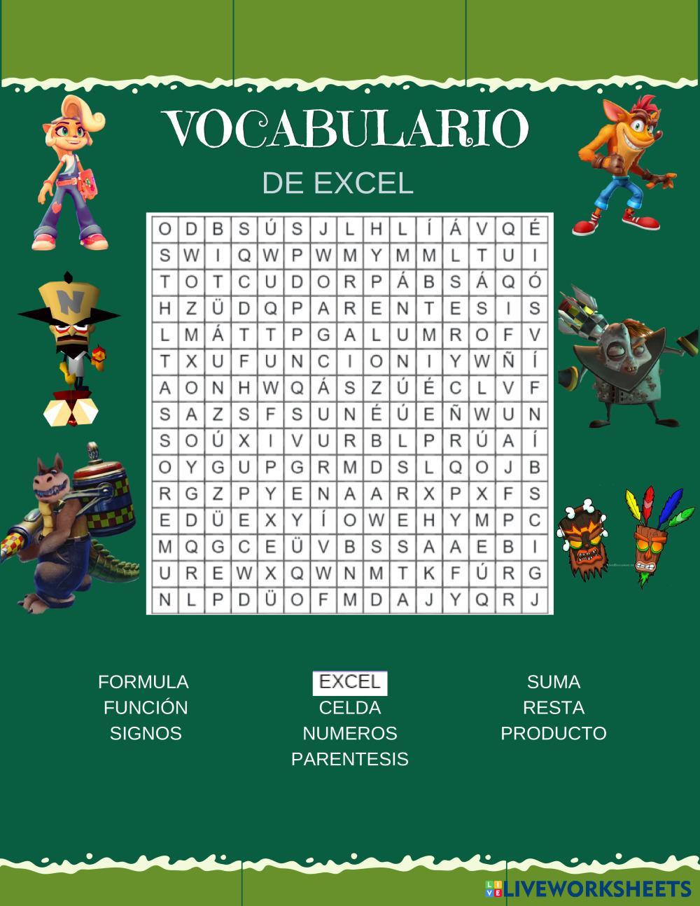 Created byCARLOS PEREZ Excel Excel Age 7-16 level: Beginner English Author's Instructions My Google Classroom Courses × 0 classes selected (0 students total) Quick Access Select all classes (0 classes) All Classes Loading courses... Cancel Share Share to selected Course __COURSE_NAME__ __STUDENT_NAME__ (__STUDENT_EMAIL__) Sopa de letras Excel Download Worksheet Validation Check my answers Emails my answers to my teacher Full name Group/level School subject Teacher's email or key code Close Submit Validating worksheet... (12) Your answers have been sent to your teacher. Good luck! OK We encountered an error submitting your answers. Please try again. OK Advertisement | Go Ad Free Created byCARLOS PEREZ Excel Excel Age 7-16 level: Beginner English Author's Instructions