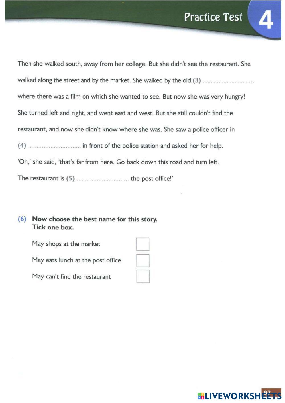 Created byThuong Nguyen FLYERS PRACTICE TEST Age 9-13 level: FLYERS English Author's Instructions My Google Classroom Courses × 0 classes selected (0 students total) Quick Access Select all classes (0 classes) All Classes Loading courses... Cancel Share Share to selected Course __COURSE_NAME__ __STUDENT_NAME__ (__STUDENT_EMAIL__) MOCK TEST FLYERS Download Worksheet Validation Check my answers Emails my answers to my teacher Full name Group/level School subject Teacher's email or key code Close Submit Validating worksheet... (12) Your answers have been sent to your teacher. Good luck! OK We encountered an error submitting your answers. Please try again. OK Advertisement | Go Ad Free Created byThuong Nguyen FLYERS PRACTICE TEST Age 9-13 level: FLYERS English Author's Instructions