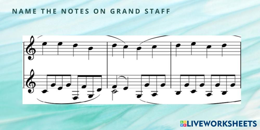 Created by canzona Forte Piano Name the notes on grand staff Age 5-15 level: Forte Piano English Author's Instructions My Google Classroom Courses × 0 classes selected (0 students total) Quick Access Select all classes (0 classes) All Classes Loading courses... Cancel Share Share to selected Course __COURSE_NAME__ __STUDENT_NAME__ (__STUDENT_EMAIL__) Name The Notes on Grand Staff Download Worksheet Validation Check my answers Emails my answers to my teacher Full name Group/level School subject Teacher's email or key code Close Submit Validating worksheet... (12) Your answers have been sent to your teacher. Good luck! OK We encountered an error submitting your answers. Please try again. OK Advertisement | Go Ad Free Created by canzona Forte Piano Name the notes on grand staff Age 5-15 level: Forte Piano English Author's Instructions