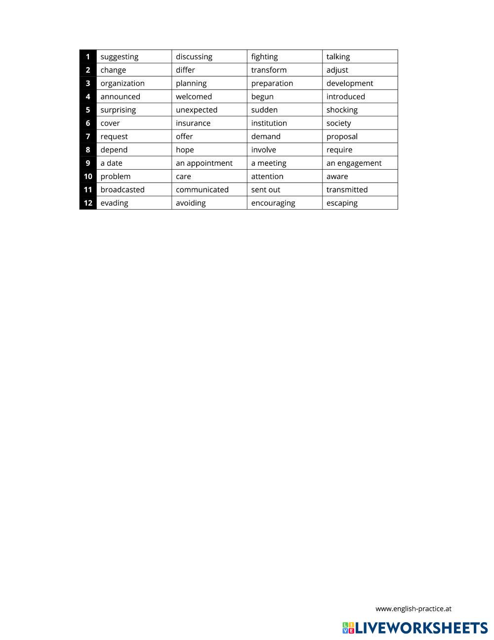 Created byTA Day Kem - IELTS Grammar LIU013 Age 10+ level: 9 English Author's Instructions My Google Classroom Courses × 0 classes selected (0 students total) Quick Access Select all classes (0 classes) All Classes Loading courses... Cancel Share Share to selected Course __COURSE_NAME__ __STUDENT_NAME__ (__STUDENT_EMAIL__) LIU013 Download Worksheet Validation Check my answers Emails my answers to my teacher Full name Group/level School subject Teacher's email or key code Close Submit Validating worksheet... (12) Your answers have been sent to your teacher. Good luck! OK We encountered an error submitting your answers. Please try again. OK Advertisement | Go Ad Free Created byTA Day Kem - IELTS Grammar LIU013 Age 10+ level: 9 English Author's Instructions