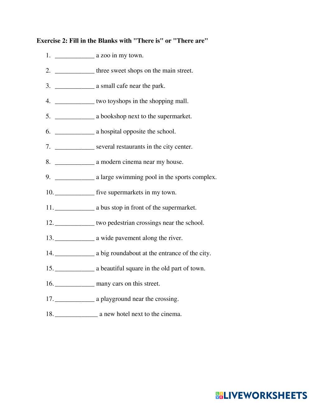 Created byAnna GRAMMAR WORKSHEET "THERE IS/THERE ARE Age 7-12 level: Starter English Author's Instructions My Google Classroom Courses × 0 classes selected (0 students total) Quick Access Select all classes (0 classes) All Classes Loading courses... Cancel Share Share to selected Course __COURSE_NAME__ __STUDENT_NAME__ (__STUDENT_EMAIL__) PO11 Download Worksheet Validation Check my answers Emails my answers to my teacher Full name Group/level School subject Teacher's email or key code Close Submit Validating worksheet... (12) Your answers have been sent to your teacher. Good luck! OK We encountered an error submitting your answers. Please try again. OK Advertisement | Go Ad Free Created byAnna GRAMMAR WORKSHEET "THERE IS/THERE ARE Age 7-12 level: Starter English Author's Instructions