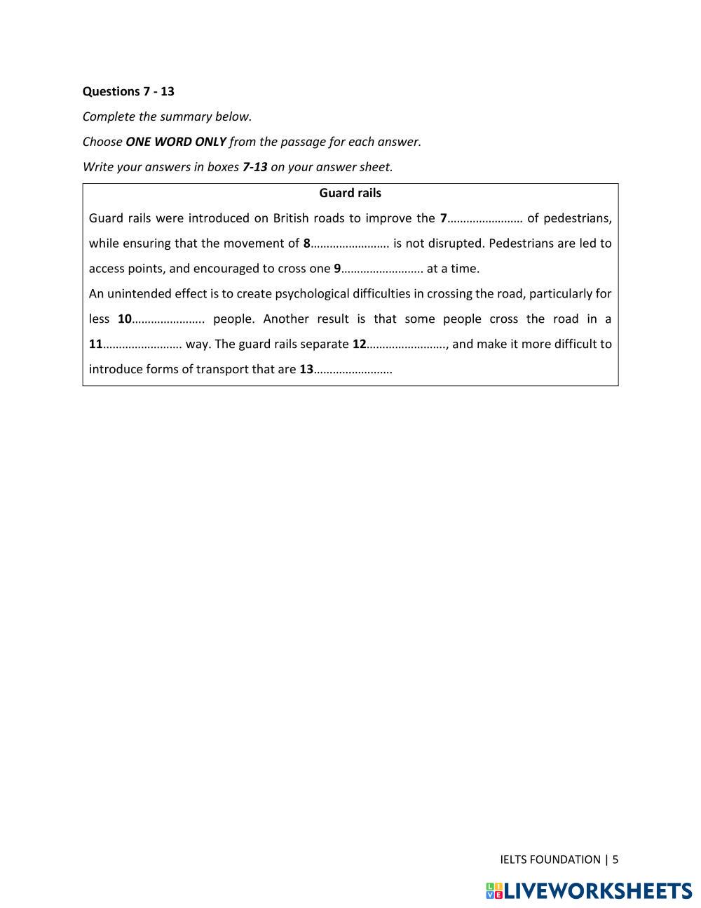 Created byLinh Dang IELTS Final test Age 15+ level: IELTS Foundation English Author's Instructions My Google Classroom Courses × 0 classes selected (0 students total) Quick Access Select all classes (0 classes) All Classes Loading courses... Cancel Share Share to selected Course __COURSE_NAME__ __STUDENT_NAME__ (__STUDENT_EMAIL__) Final test - Reading Download Worksheet Validation Check my answers Emails my answers to my teacher Full name Group/level School subject Teacher's email or key code Close Submit Validating worksheet... (12) Your answers have been sent to your teacher. Good luck! OK We encountered an error submitting your answers. Please try again. OK Advertisement | Go Ad Free Created byLinh Dang IELTS Final test Age 15+ level: IELTS Foundation English Author's Instructions