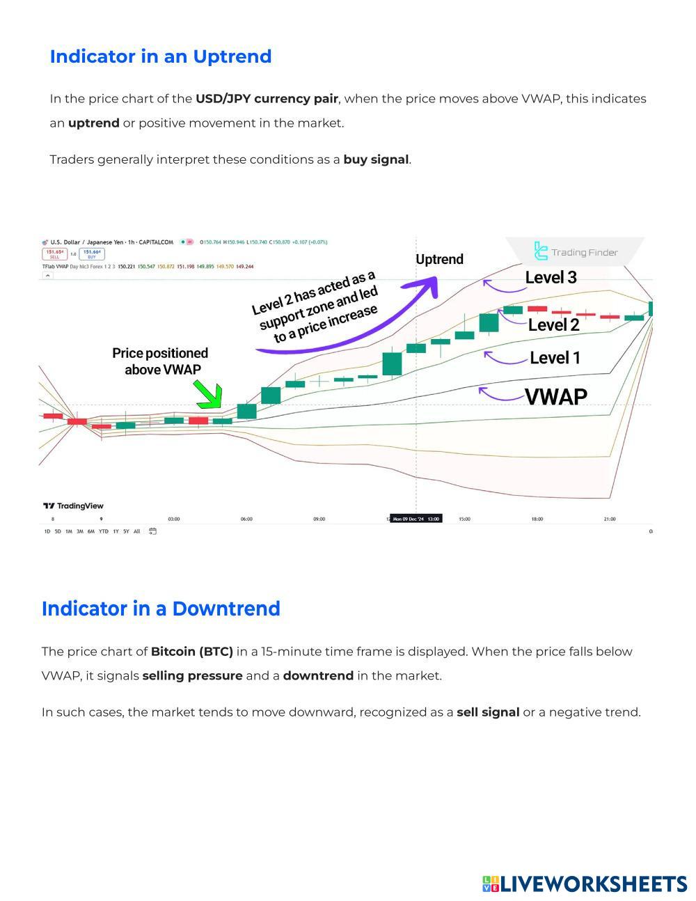 The VWAP Bands Indicator calculates the weighted average price over a specified time period by combining price and volume.