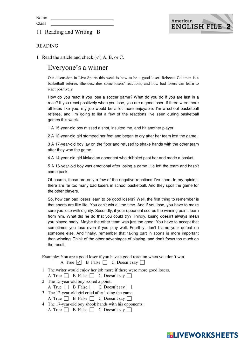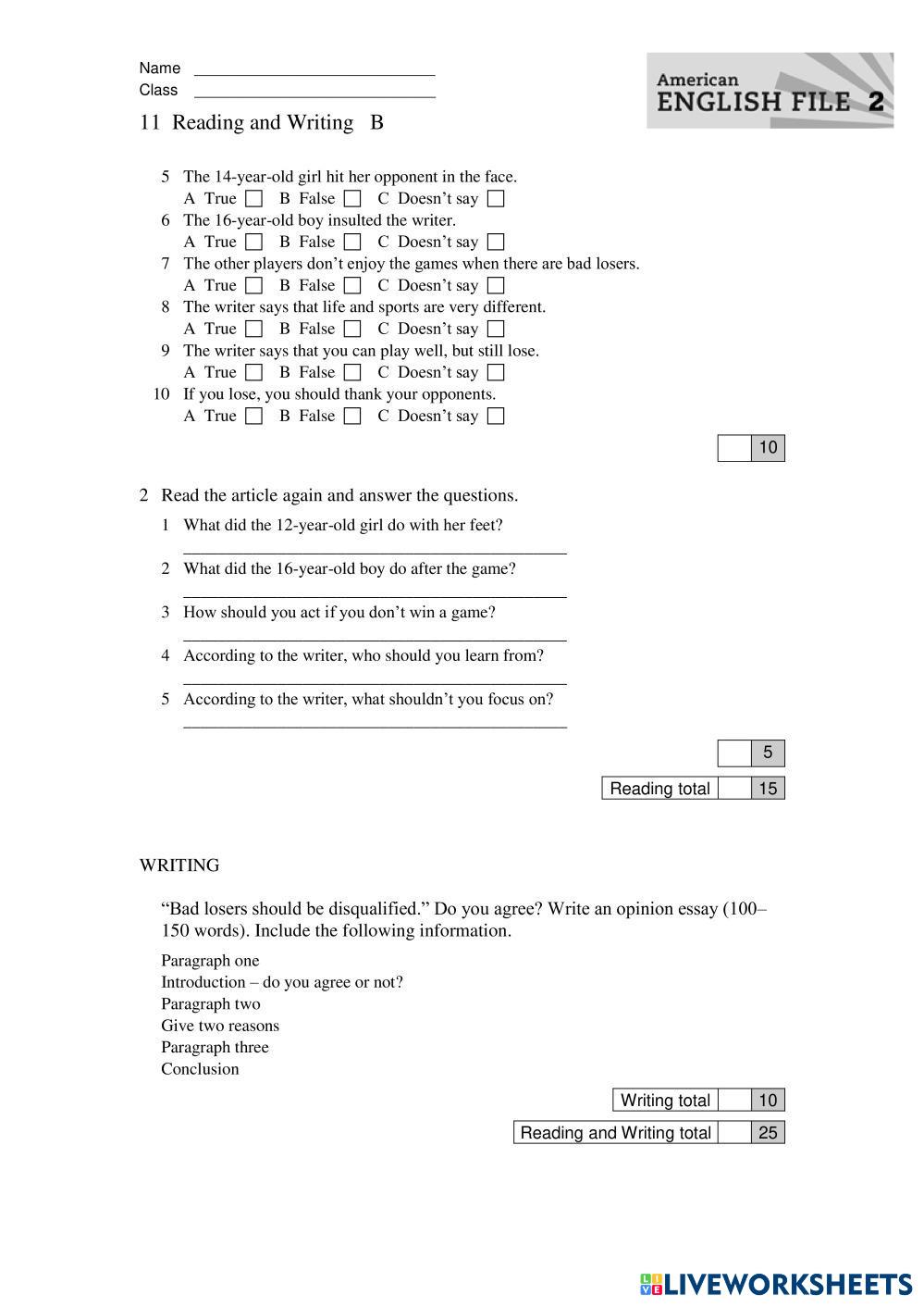 Created byEvelyn Figueroa inglish test Age 18+ level: level English Author's Instructions My Google Classroom Courses × 0 classes selected (0 students total) Quick Access Select all classes (0 classes) All Classes Loading courses... Cancel Share Share to selected Course __COURSE_NAME__ __STUDENT_NAME__ (__STUDENT_EMAIL__) test Download Worksheet Validation Check my answers Emails my answers to my teacher Full name Group/level School subject Teacher's email or key code Close Submit Validating worksheet... (12) Your answers have been sent to your teacher. Good luck! OK We encountered an error submitting your answers. Please try again. OK Advertisement | Go Ad Free Created byEvelyn Figueroa inglish test Age 18+ level: level English Author's Instructions