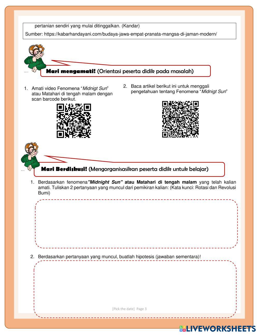 Created byDian Risqi Fatimah IPA Solar System Age 12-17 level: 7 English Author's Instructions My Google Classroom Courses × 0 classes selected (0 students total) Quick Access Select all classes (0 classes) All Classes Loading courses... Cancel Share Share to selected Course __COURSE_NAME__ __STUDENT_NAME__ (__STUDENT_EMAIL__) Rotasi dan Revolusi Bumi Worksheets Download Worksheet Validation Check my answers Emails my answers to my teacher Full name Group/level School subject Teacher's email or key code Close Submit Validating worksheet... (12) Your answers have been sent to your teacher. Good luck! OK We encountered an error submitting your answers. Please try again. OK Advertisement | Go Ad Free Created byDian Risqi Fatimah IPA Solar System Age 12-17 level: 7 English Author's Instructions
