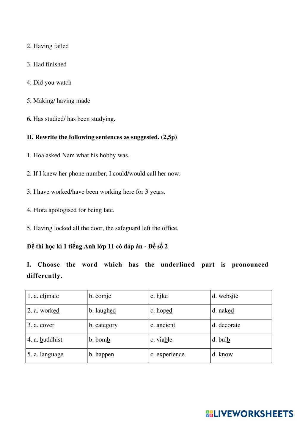 Created byLê Quang Vinh Language Focus Vocabulary and Grammar Age 16+ level: 11 English Author's Instructions My Google Classroom Courses × 0 classes selected (0 students total) Quick Access Select all classes (0 classes) All Classes Loading courses... Cancel Share Share to selected Course __COURSE_NAME__ __STUDENT_NAME__ (__STUDENT_EMAIL__) CALT - T2 Ca 2 - Language focus (Lê Quang Vinh) Download Worksheet Validation Check my answers Emails my answers to my teacher Full name Group/level School subject Teacher's email or key code Close Submit Validating worksheet... (12) Your answers have been sent to your teacher. Good luck! OK We encountered an error submitting your answers. Please try again. OK Advertisement | Go Ad Free Created byLê Quang Vinh Language Focus Vocabulary and Grammar Age 16+ level: 11 English Author's Instructions