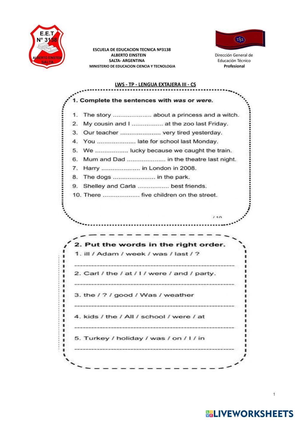To be - other verbs - Past form