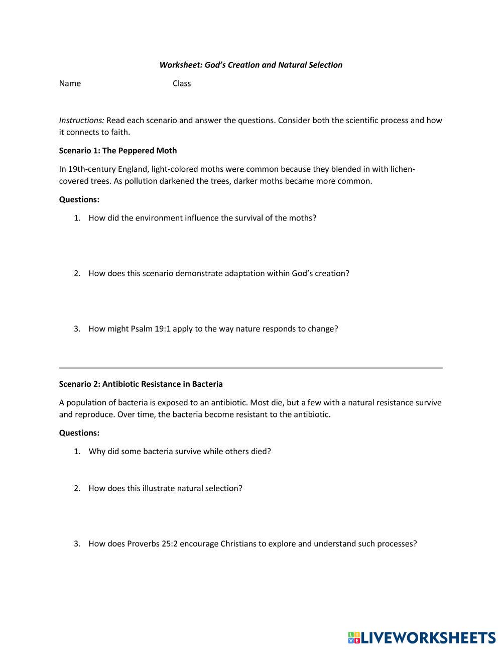 Created byAndre Constanzo Life Science Evolution Age 13-17 level: 8th English Author's Instructions My Google Classroom Courses × 0 classes selected (0 students total) Quick Access Select all classes (0 classes) All Classes Loading courses... Cancel Share Share to selected Course __COURSE_NAME__ __STUDENT_NAME__ (__STUDENT_EMAIL__) Worksheet: God’s Creation and Natural Selection Download Worksheet Validation Check my answers Emails my answers to my teacher Full name Group/level School subject Teacher's email or key code Close Submit Validating worksheet... (12) Your answers have been sent to your teacher. Good luck! OK We encountered an error submitting your answers. Please try again. OK Advertisement | Go Ad Free Created byAndre Constanzo Life Science Evolution Age 13-17 level: 8th English Author's Instructions