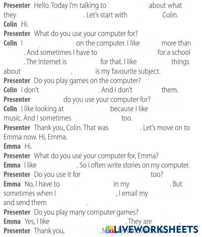 Created byNguyễn Văn Đạt LISTENING Listening skill Age 12-16 level: Teen English Author's Instructions My Google Classroom Courses × 0 classes selected (0 students total) Quick Access Select all classes (0 classes) All Classes Loading courses... Cancel Share Share to selected Course __COURSE_NAME__ __STUDENT_NAME__ (__STUDENT_EMAIL__) LISTENING_54_FF6_IPA Download Worksheet Validation Check my answers Emails my answers to my teacher Full name Group/level School subject Teacher's email or key code Close Submit Validating worksheet... (12) Your answers have been sent to your teacher. Good luck! OK We encountered an error submitting your answers. Please try again. OK Advertisement | Go Ad Free Created byNguyễn Văn Đạt LISTENING Listening skill Age 12-16 level: Teen English Author's Instructions