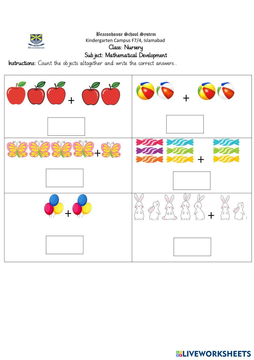 count the objects and write the correct answer.