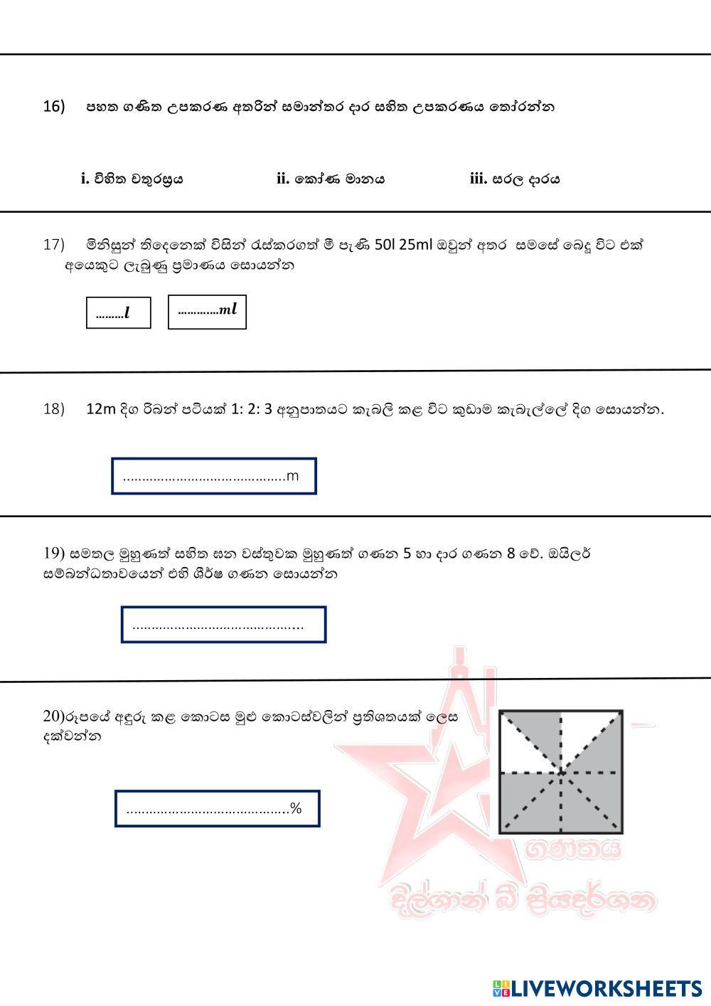 ප්රශ්න සියල්ලටම පිළිතුරු සපයන්න.