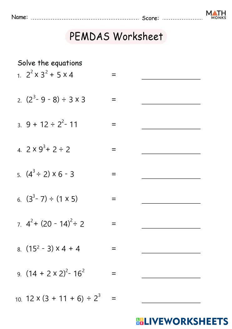 Created by Yulia1305 Math Middle School 6th grade Algebra English Author's Instructions Pemdas worksheets My Google Classroom Courses × 0 classes selected (0 students total) Quick Access Select all classes (0 classes) All Classes Loading courses... Cancel Share Share to selected Course __COURSE_NAME__ __STUDENT_NAME__ (__STUDENT_EMAIL__) Pemdas worksheets Download Worksheet Validation Check my answers Emails my answers to my teacher Full name Group/level School subject Teacher's email or key code Close Submit Validating worksheet... (12) Your answers have been sent to your teacher. Good luck! OK We encountered an error submitting your answers. Please try again. OK Advertisement | Go Ad Free Created by Yulia1305 Math Middle School 6th grade Algebra English Author's Instructions Pemdas worksheets Explore Worksheets Уравнения Math 6th grade Уравнения Algebra - Math Найти корень уравнения Worksheets Math 6th grade Worksheets Algebra - Math Worksheets Addition of 4 integers Math 6th grade Addition of 4 integers Algebra - Math Addition of 4 integers Pemdas worksheets Math 6th grade Pemdas worksheets Algebra - Math Pemdas worksheets
