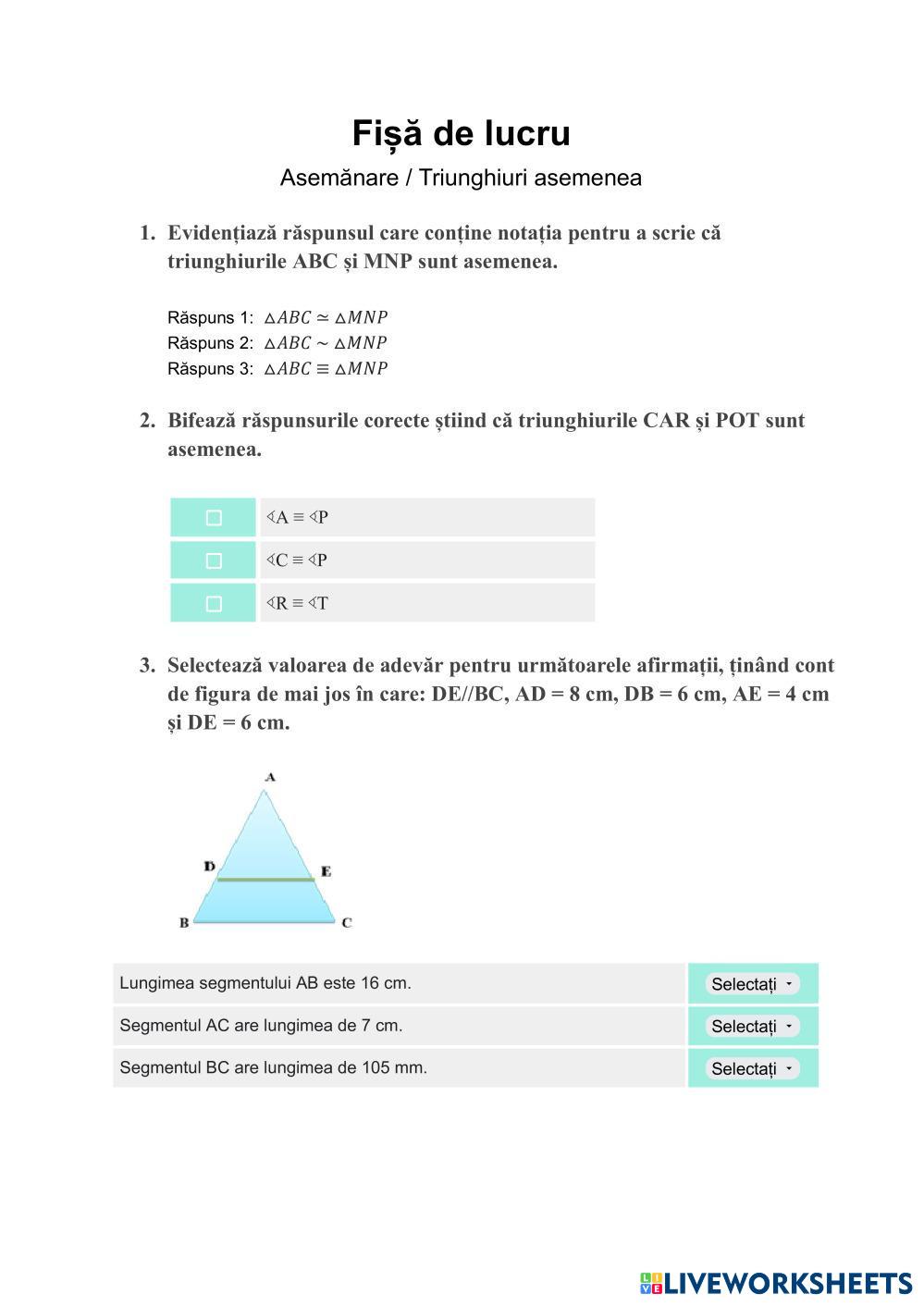 Citeste cu atentie cerintele si rezolva problemele din fisa: