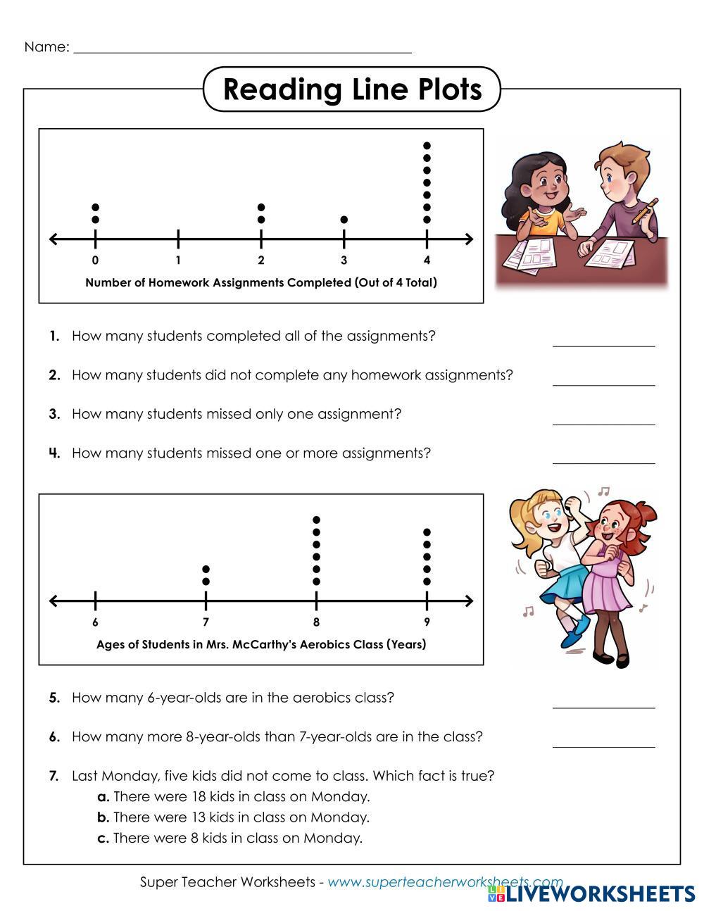 Use the line plots to analyze the data and answer the questions. To find the mean: 1) add all data together. 2) Divide the sum (answer you got after adding) by the number of data points. To find the range: Subtract your lowest data point from your highest data point.