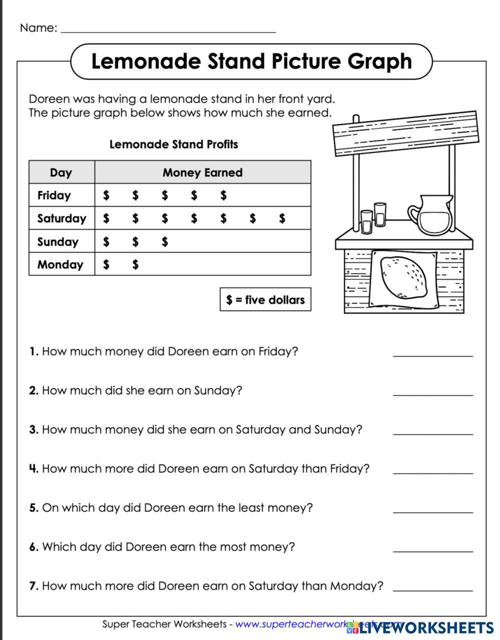 Created byLapeedra Damianos Math Elementary 2nd grade Measurement English Author's Instructions Complete the worksheet. My Google Classroom Courses × 0 classes selected (0 students total) Quick Access Select all classes (0 classes) All Classes Loading courses... Cancel Share Share to selected Course __COURSE_NAME__ __STUDENT_NAME__ (__STUDENT_EMAIL__) Pictographs Download Worksheet Validation Check my answers Emails my answers to my teacher Full name Group/level School subject Teacher's email or key code Close Submit Validating worksheet... (12) Your answers have been sent to your teacher. Good luck! OK We encountered an error submitting your answers. Please try again. OK Advertisement | Go Ad Free Created byLapeedra Damianos Math Elementary 2nd grade Measurement English Author's Instructions Complete the worksheet. Explore Worksheets Bài 1: Số ? Math 2nd grade Bài 1: Số ? Measurement - Math Bài 1: Số ? رسم بياني بالصور Math 2nd grade رسم بياني بالصور Measurement - Math املئ الفراغ بما يناسبة Bar Graphs Math 2nd grade Bar Graphs Measurement - Math Complete the worksheet. Bài 3: Tính nhẩm Math 2nd grade Bài 3: Tính nhẩm Measurement - Math Bài 3