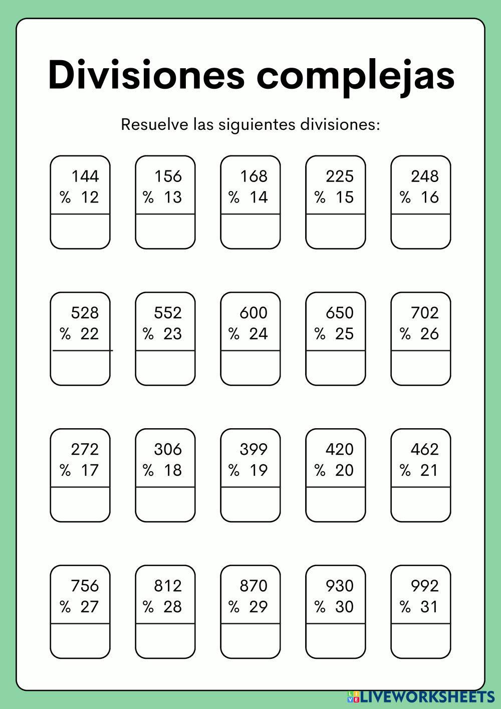 En esta ficha de matemáticas para cuarto grado, tus estudiantes deberán realizar divisiones de números de tres cifras por números de dos cifras.