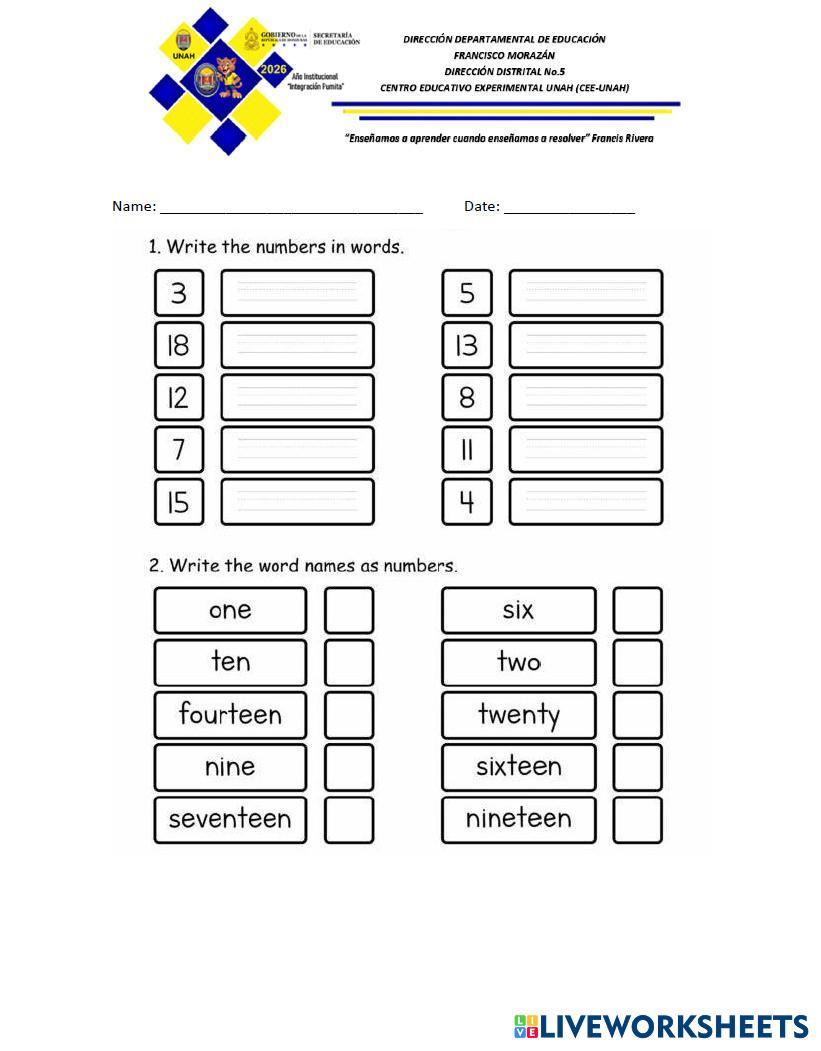 Activity 1:Numbers in Words