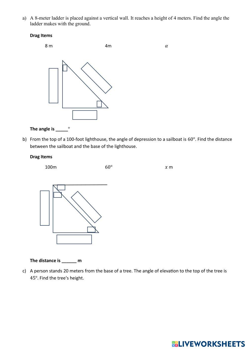 This worksheet will test your understanding of trigonometric ratios and their real-world applications.