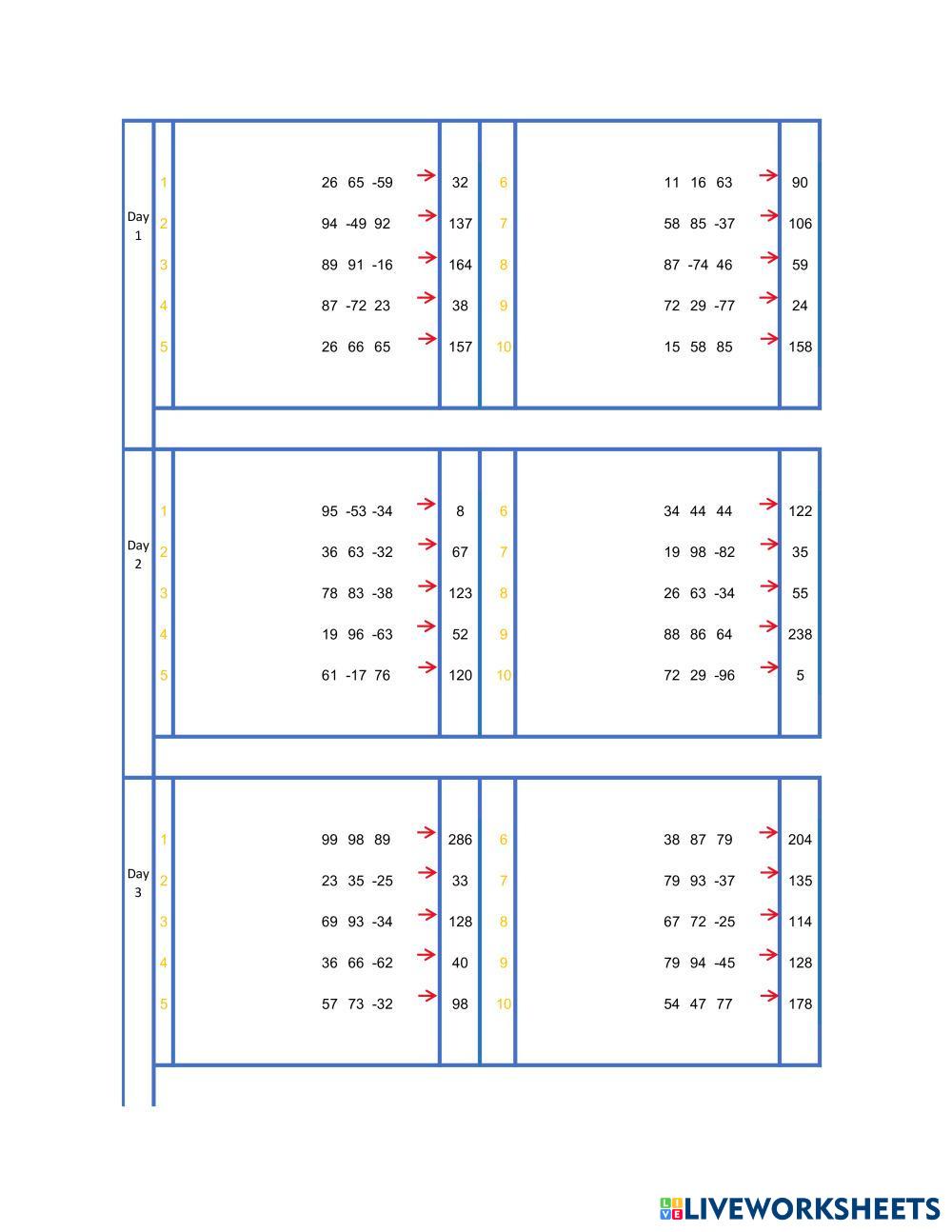 Created by henrychiam Math Addition and subtraction Age 7-9 level: 3 English Author's Instructions My Google Classroom Courses × 0 classes selected (0 students total) Quick Access Select all classes (0 classes) All Classes Loading courses... Cancel Share Share to selected Course __COURSE_NAME__ __STUDENT_NAME__ (__STUDENT_EMAIL__) B3pg11H Download Worksheet Validation Check my answers Emails my answers to my teacher Full name Group/level School subject Teacher's email or key code Close Submit Validating worksheet... (12) Your answers have been sent to your teacher. Good luck! OK We encountered an error submitting your answers. Please try again. OK Advertisement | Go Ad Free Created by henrychiam Math Addition and subtraction Age 7-9 level: 3 English Author's Instructions