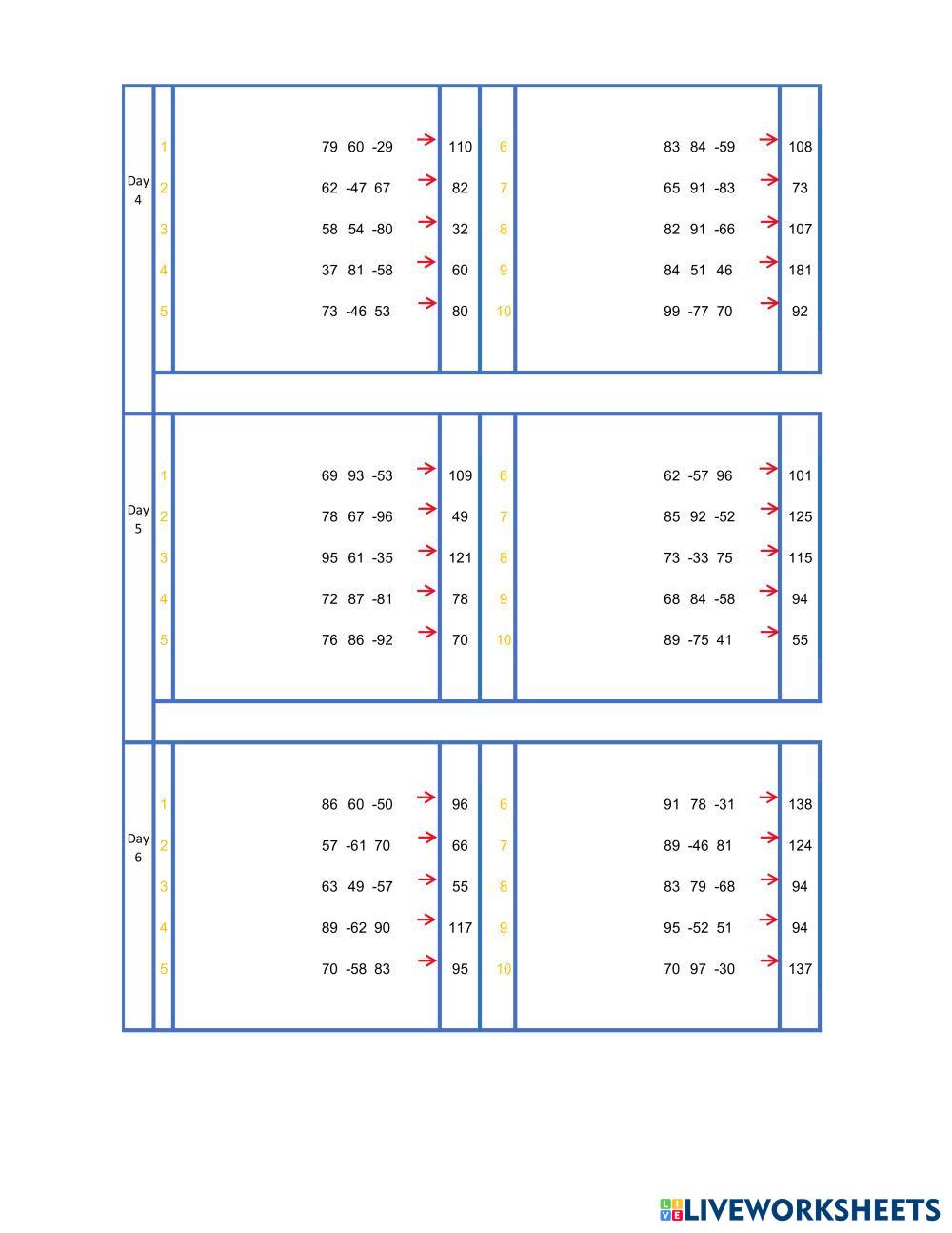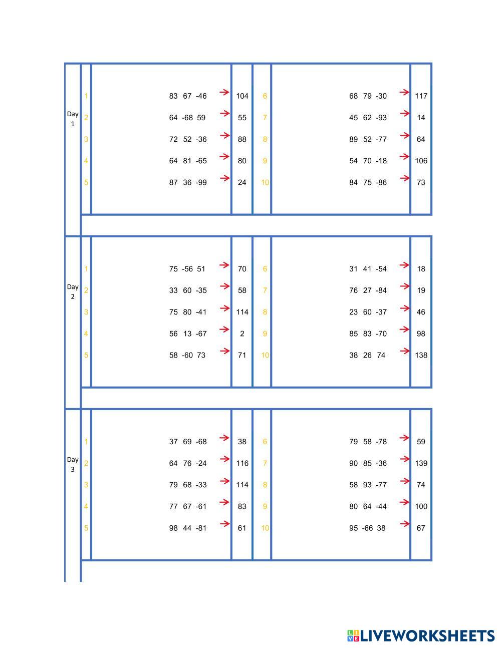Created by henrychiam Math Addition and subtraction Age 7-9 level: 3 English Author's Instructions My Google Classroom Courses × 0 classes selected (0 students total) Quick Access Select all classes (0 classes) All Classes Loading courses... Cancel Share Share to selected Course __COURSE_NAME__ __STUDENT_NAME__ (__STUDENT_EMAIL__) B3pg18H Download Worksheet Validation Check my answers Emails my answers to my teacher Full name Group/level School subject Teacher's email or key code Close Submit Validating worksheet... (12) Your answers have been sent to your teacher. Good luck! OK We encountered an error submitting your answers. Please try again. OK Advertisement | Go Ad Free Created by henrychiam Math Addition and subtraction Age 7-9 level: 3 English Author's Instructions