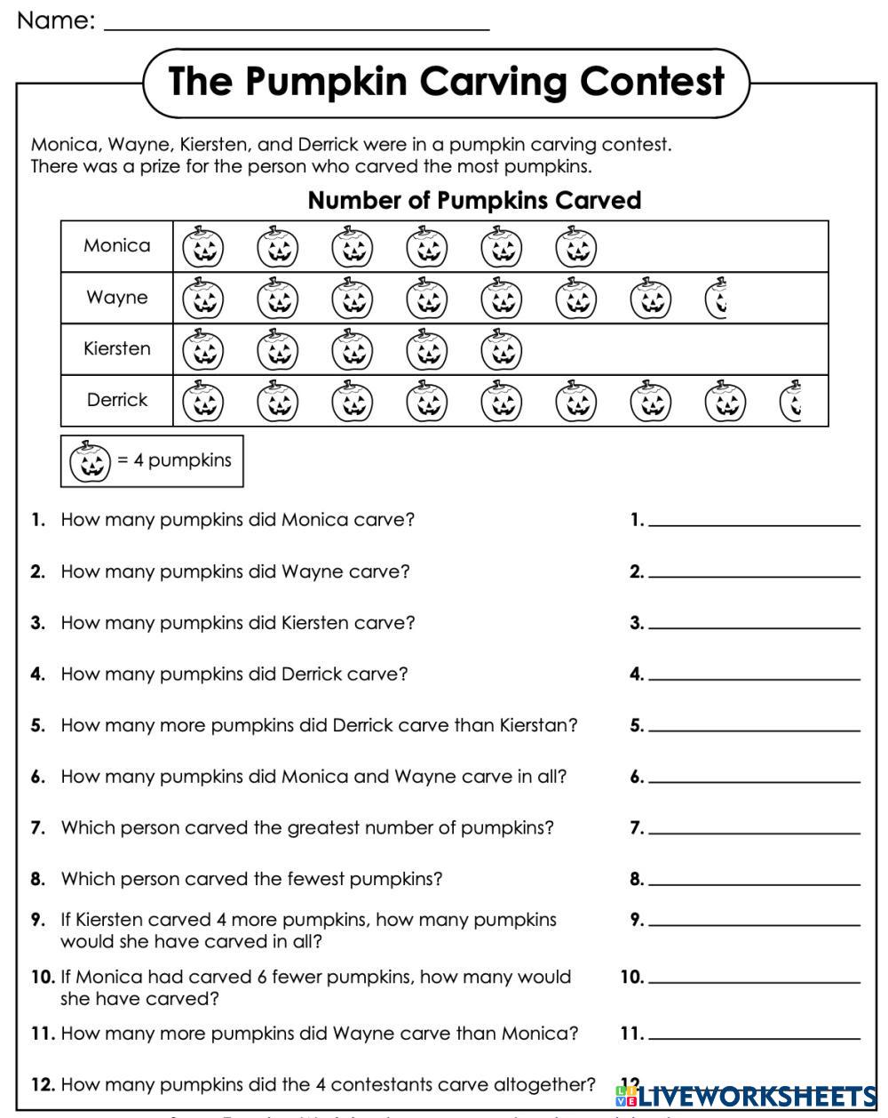 Monica, Wayne, Kiersten, and Derrick were in a pumpkin carving contest. There was a prize for the person who carved the most pumpkins.